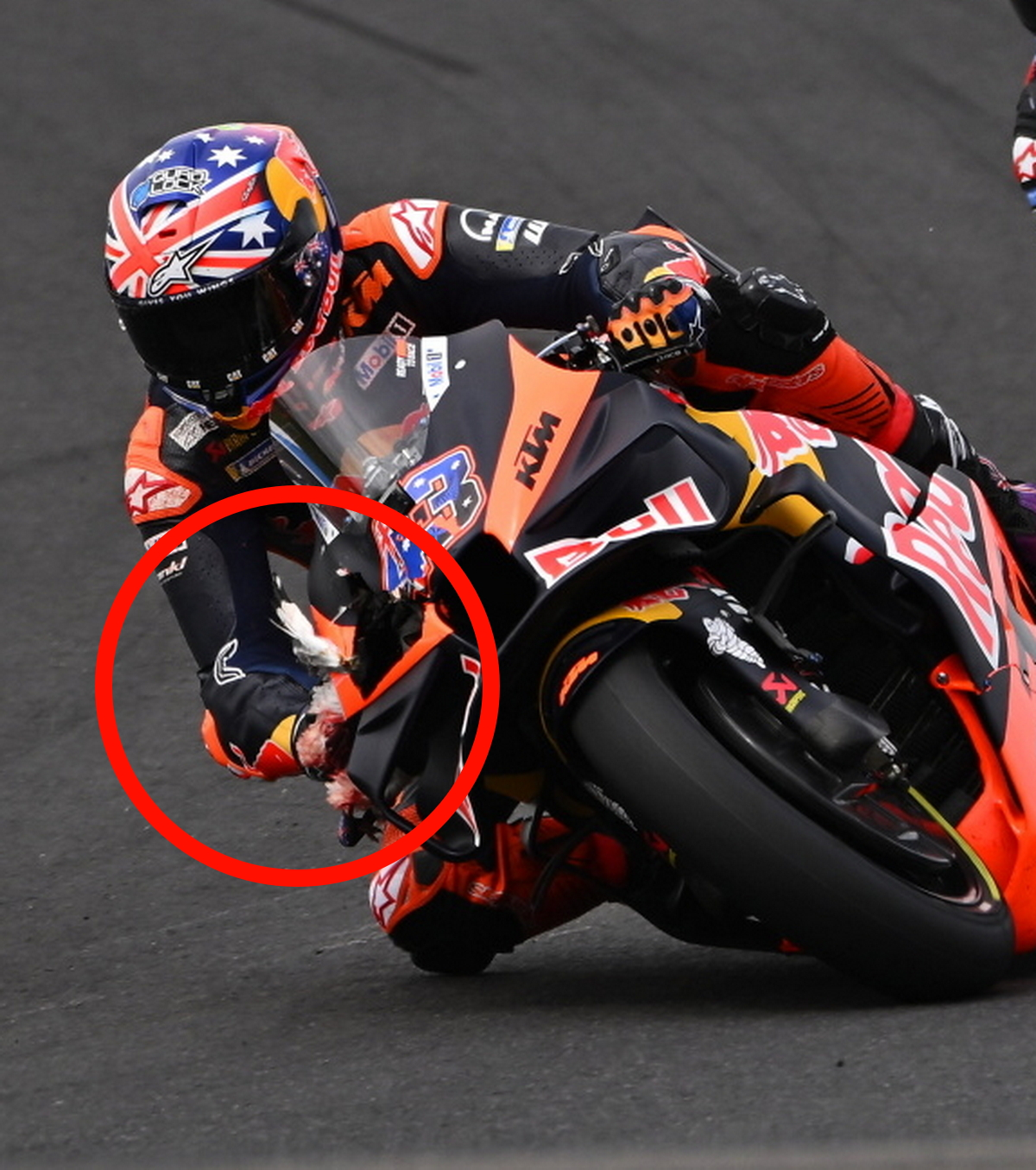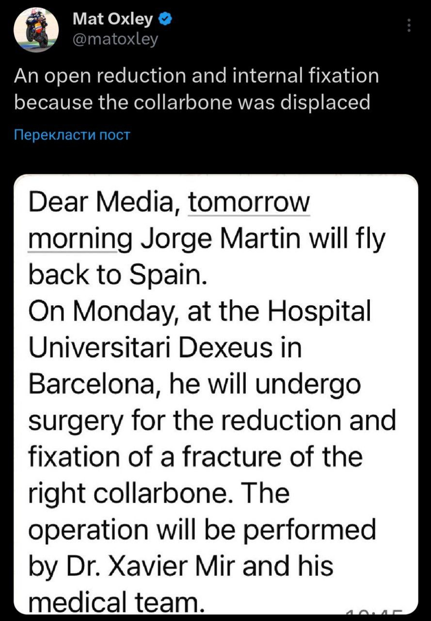 > Из-за проколотого легкого, трубки для оттока воздуха и одиннадцати сломанных ребер гонщику Aprilia, возможно, придется провести в Катаре две или более недель в режиме полного покоя.