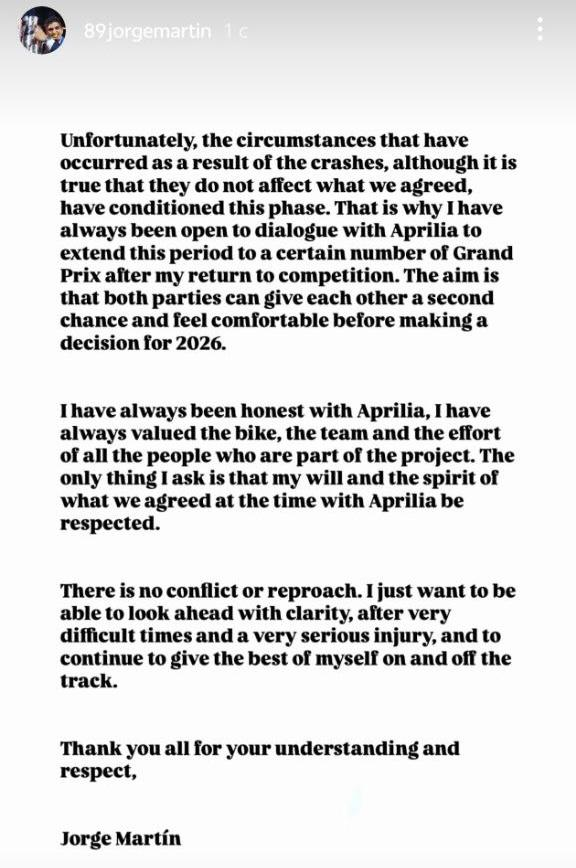 Как сателлит Ducati, команда VR46 располагает одним заводским байком. Кроме того, «в последние дни» в числе кандидатов неожиданно появилась Aprilia, пишет Gazzetta. Ситуация с Хорхе Мартином пока далека от разрешения: он по-прежнему настаивает на намерении воспользоваться пунктом в контракте и уйти из Aprilia по окончании сезона.