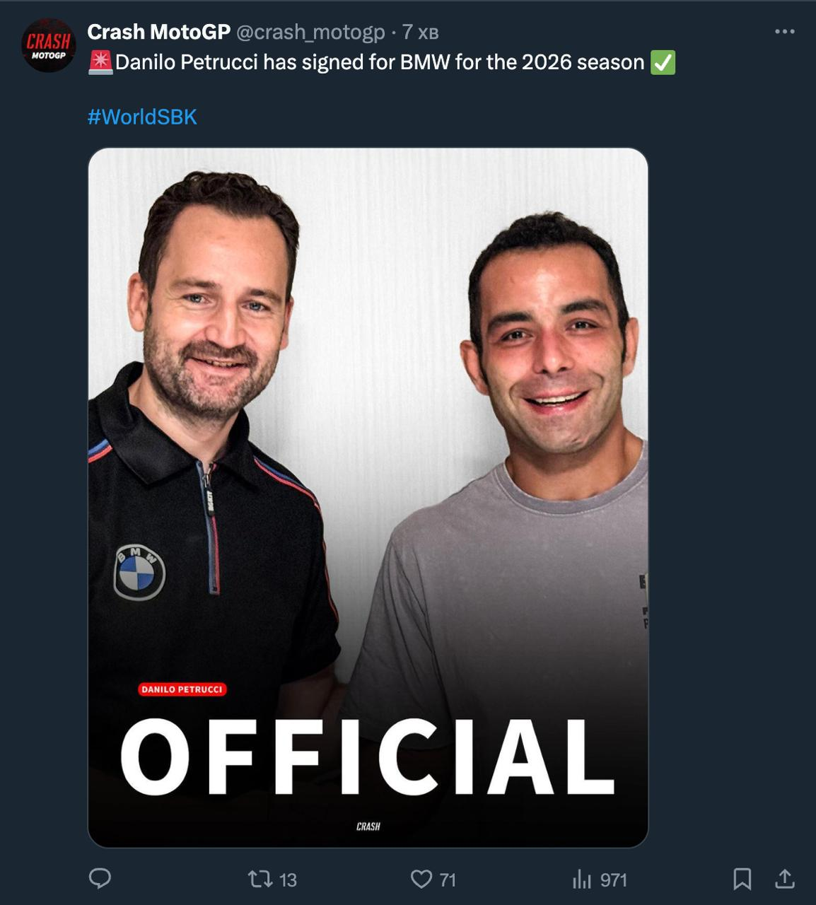 >>490966 Педро Акоста может оказаться на Ducati в 2026 году – об этом неожиданно сообщают в Испании. По данным AS, Акоста может «сменить обстановку» в следующем году, если его KTM не продемонстрирует ожидаемую конкурентоспособность. Источник утверждает, что такая «опция» уже «начала рассматриваться».