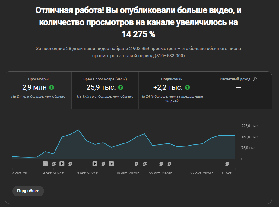 >>485951 Дело то не в этом, когда подписоты было в районе 1 тысячи, ролики уже набирали по 50-300к, хотя я попукивал в петличку за 500р громко тыкал плей паузу прям в режиме онлайн и нихуя не монтировал, на стримах собирался народ и ДОНАТИЛ, а ща я чет стараюсь, тексты придумываю, монтирую, а оно один хуй набирает меньше. Эт чо значит? Значит я куда-то не туда шагаю, нужно в другом месте приложить усилия