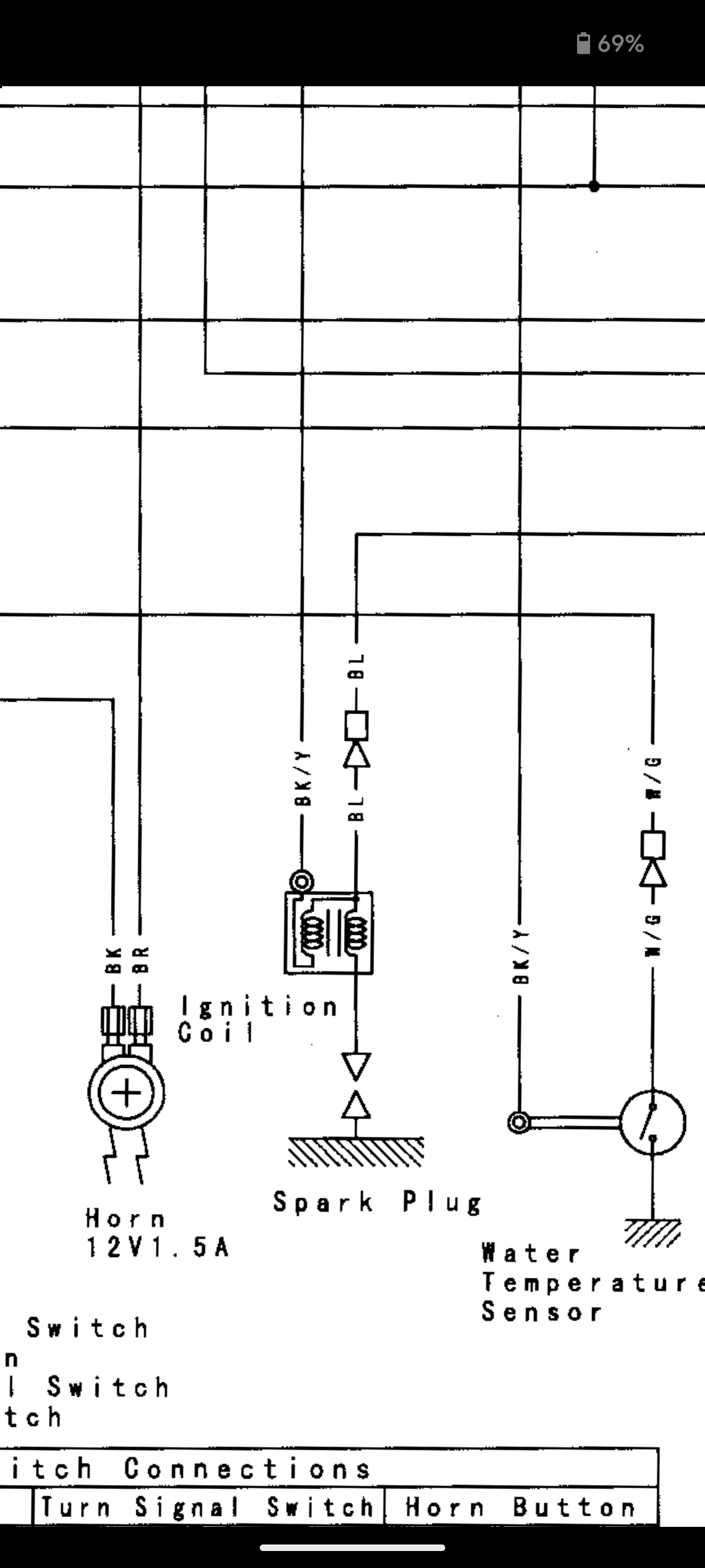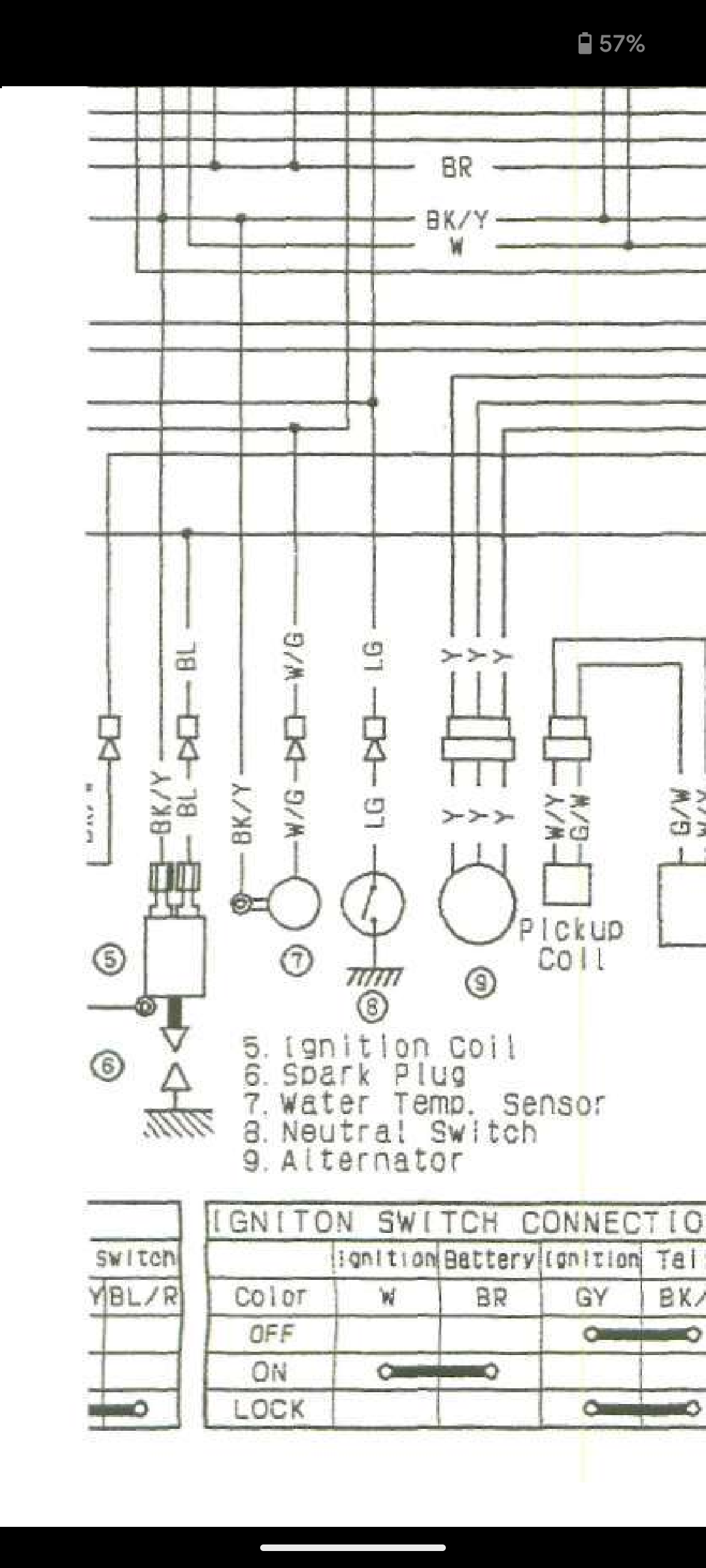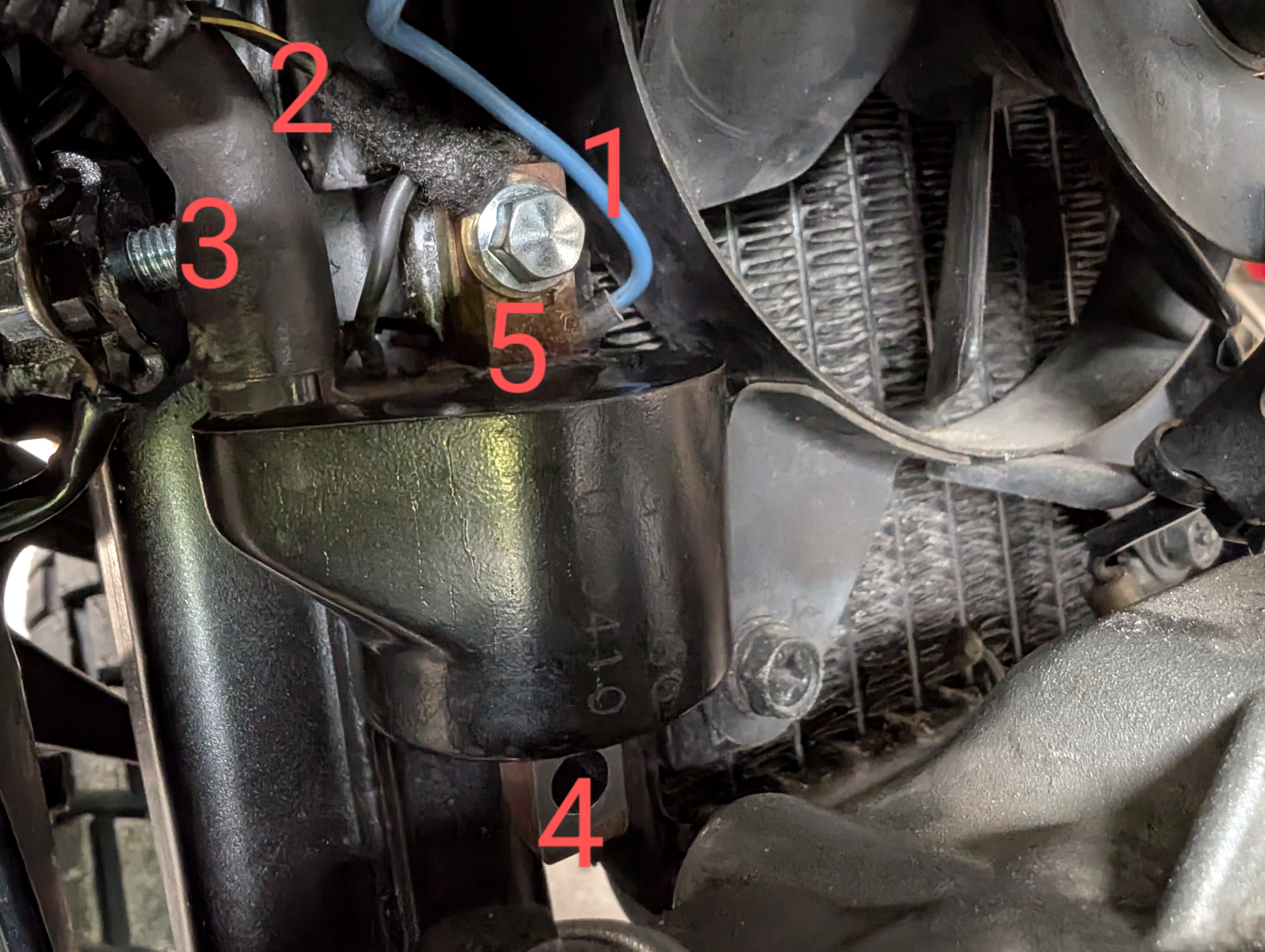 >>503443 А нет, всё равно даже несмотря на правильные провода, искры нет. Я больше не знаю, что можно ещё сделать и как правильно этот сраный койл крепить. В Ютюбе информации не нашел, в мануале на древние klx вроде расписаны основные моменты, но как именно подключать, нет. Должно быть два кабеля к койлу всего, если по диаграмме: синий (1) через коннектор - тут ошибиться нельзя и черно жёлтый (2) через клемму. Черный можно приделать правда только к верхней штуке у когда (5), а до нижней он физически не достанет. Перевернуть койл, чтобы он крепился к раме за низ (4) нельзя - он так не встанет, а что туда должно идти и должно ли хоть что-то - это неизвестно. А номер (3) это кабель высоковольтный для свечи.