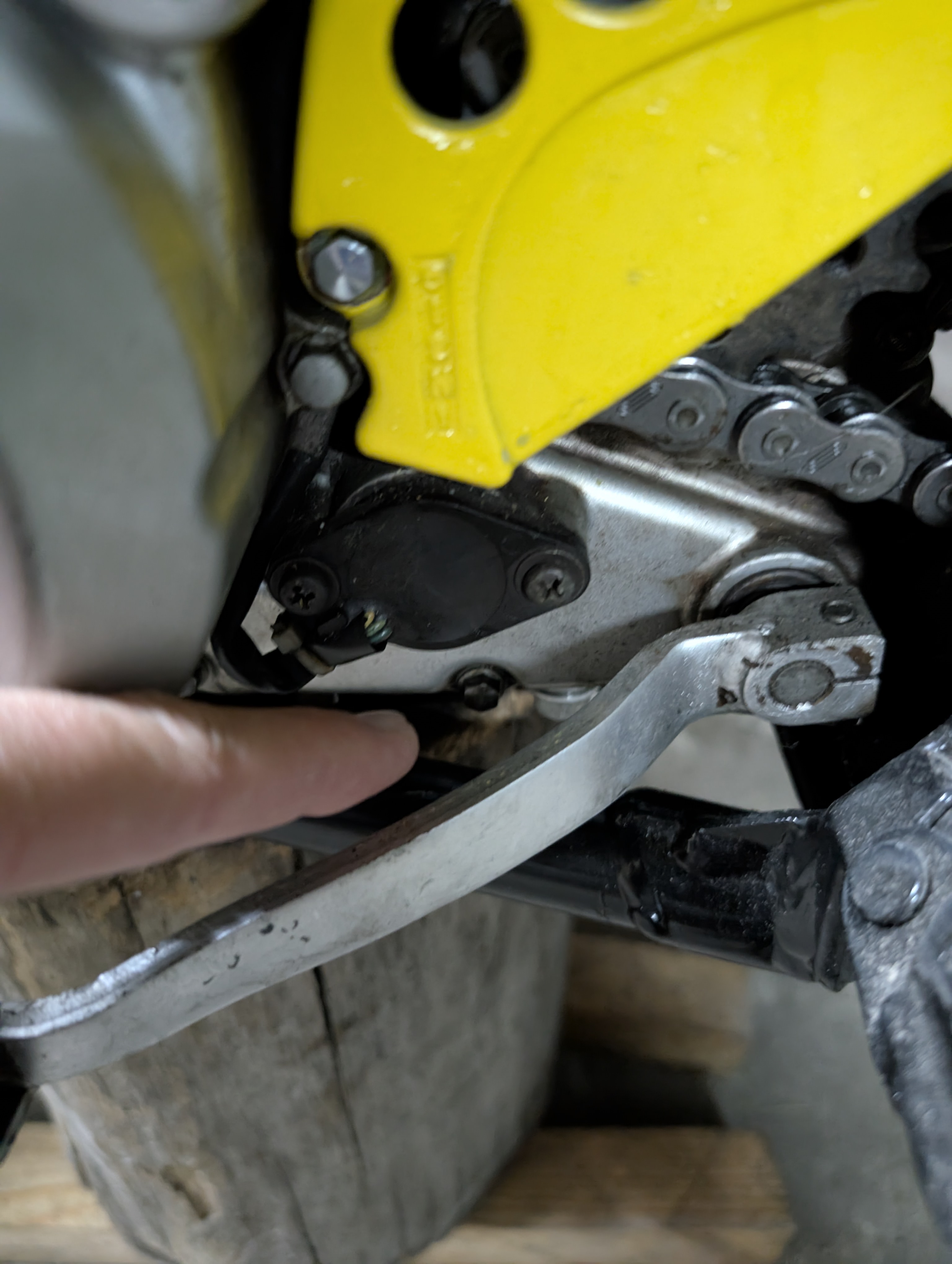 Ну и всё ещё Сузуки далеко до достойного состояния: 1) Во первых подтекает, пусть и медленно, маспо из места, где я обнаружил сорванный болт во время контрольной протяжки по мануалу спасибо наверное японцам, которые не знали про динамометрический ключ. 2) Во вторых течёт реар шок, который я прошлом году сдавал между прочим в ремонт и он нагрузок после этого не имел, а 99,9% времени был просто вывешен. Думаю, что можно теперь уже либо самому с ним повозиться, ибо кабанам механикам я что-то уже больше не доверяю, а сам пусть и долго и не всегда с первого раза, но восстанавливаю. Либо как вариант можно поискать китайский АНАЛог, подходящий по размерам, но с этим сложно очень --- надо думать и искать решения. 3) Ну и 3, в третьих, надо чтобы двигатель поработал какое-то время и успел нагреться и посмотреть, работает ли пропеллер на радиаторе и датчики и помпа. Сам корпус двигателя после мини прогрева был теплый, но пропеллер не включался, собственно надо убедиться, что всё ок, чтобы не сварилось там ничего когда не надо. А ведь как назло, датчик перегрева отсутствует.