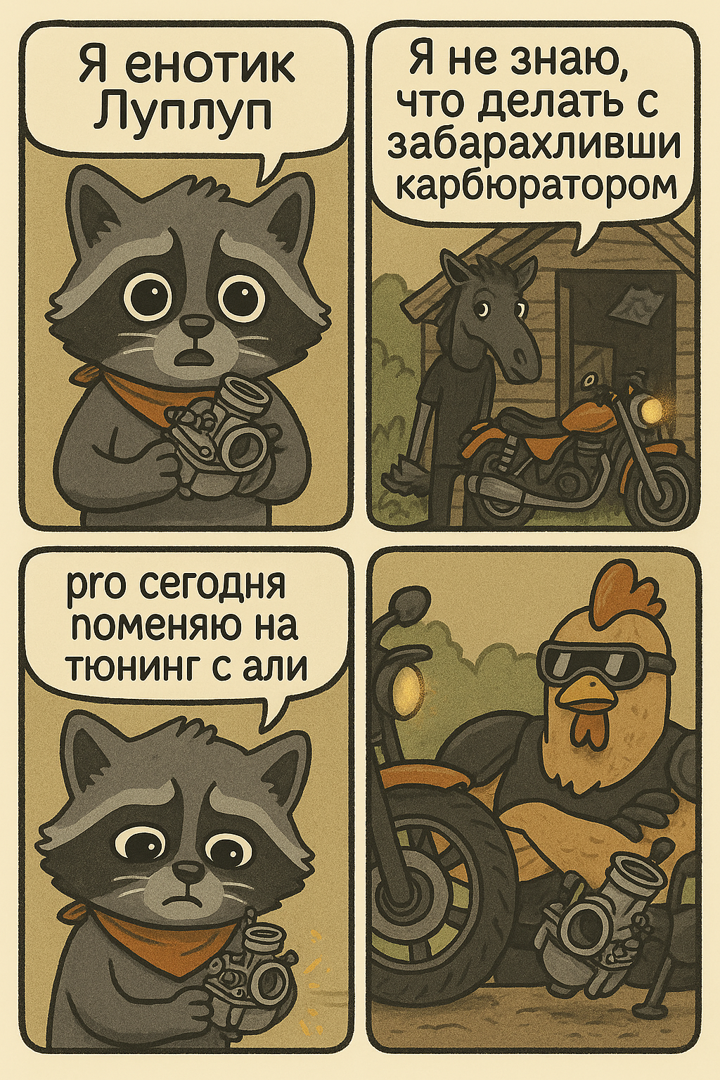 >>504302 Двачую этого. У нас в селе недавно разобрался пиздюк на двутактном КТМе. Не наглухо, но сезон закрыл. Причем мотак был не его, а корешка. Батя владельца мота пришел с бати разъебавшегося бабло трясти на новый мотак, типа, твой сына расхуярил чужой мотак, гони бабло. Батя расхуярившегося его нахуй послал, типа, нам ща жеребенка лечить, иди нахуй. Поорали, разошлись, но бамбалейро пуканьеро женской части в чате шло сутки, так что админ чат закрыл и нахер всё потёр.