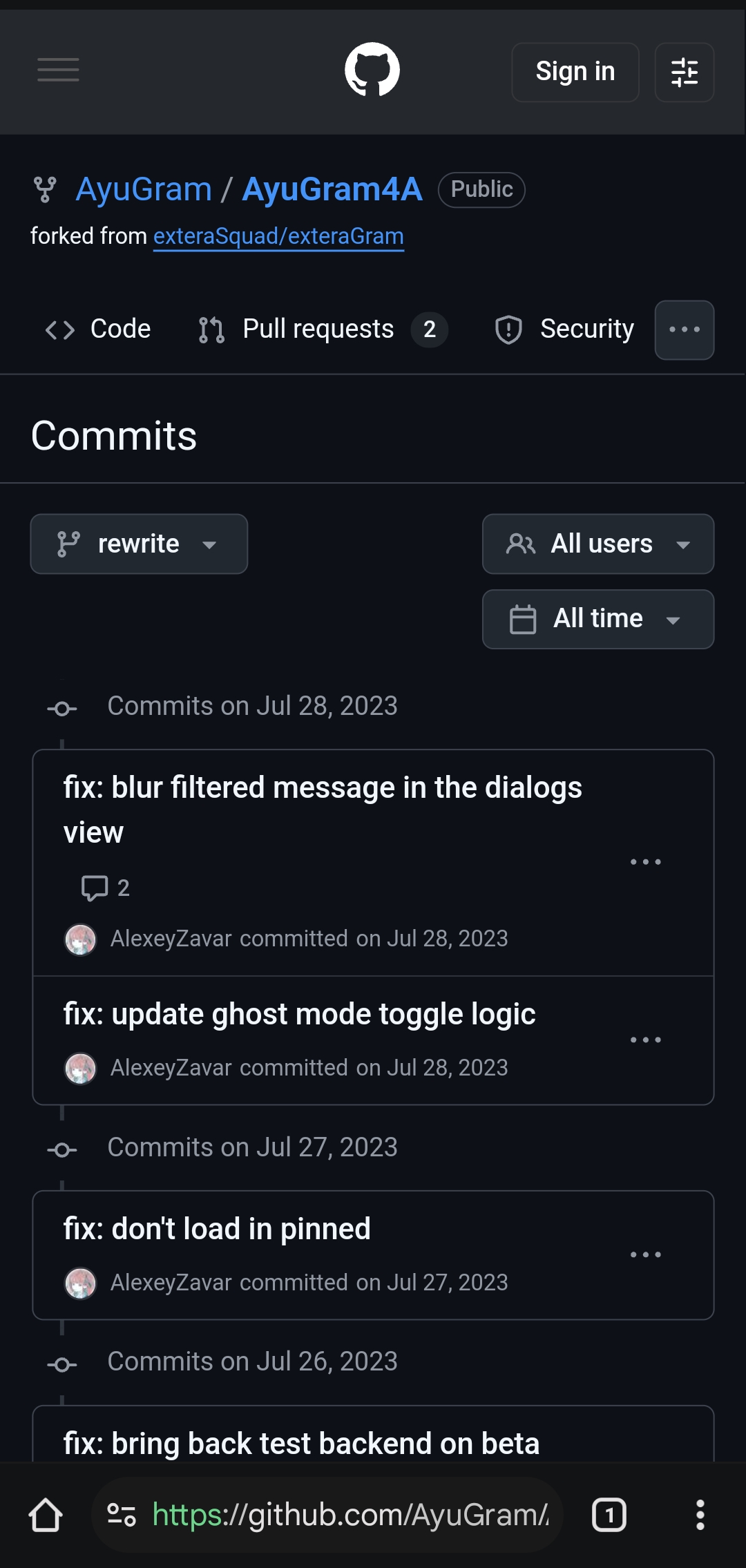 >>2621685 Если же тебе, ну уж хочется сохранить какой-то медиаконтент, то в этом плане тебя сильно могут выручить, различные модули и клиенты, в которых можно сохранять этот самый контент, и через них ты уже сможешь это сделать. Если же твой смартфон рутирован, то ты сможешь использовать как раз модули, их существует куча, но остановимся пожалуй на одном из них - называется он TMoe, в нем убрано ограничение на загрузку из приватных/закрытых каналов, хотя, так же убрано ограничение на пересылку, но я не пробовал, и сказать тебе не смогу. Но если же у тебя смартфон не рутирован, то твой выход один, это — клиенты. Я не побоюсь этого слова, но этот клиент единственный нормальный, который я пробовал, и он популярный из-за своего функционала. Называется он Ayugram, в нем так же убрано ограничение на загрузку и пересылку. А вот, что касается ПК, то разработчики Ayugram - просто ленивые задницы, и если ты попытаешься через ПК перекинуть сообщение на котором стоит подобное ограничение, то тебе выдаст ошибку, и разработчики из-за своей лени, не хотят это дорабатывать. Но скачивать различный контент, на котором стоят ограничения, ты всегда сможешь.