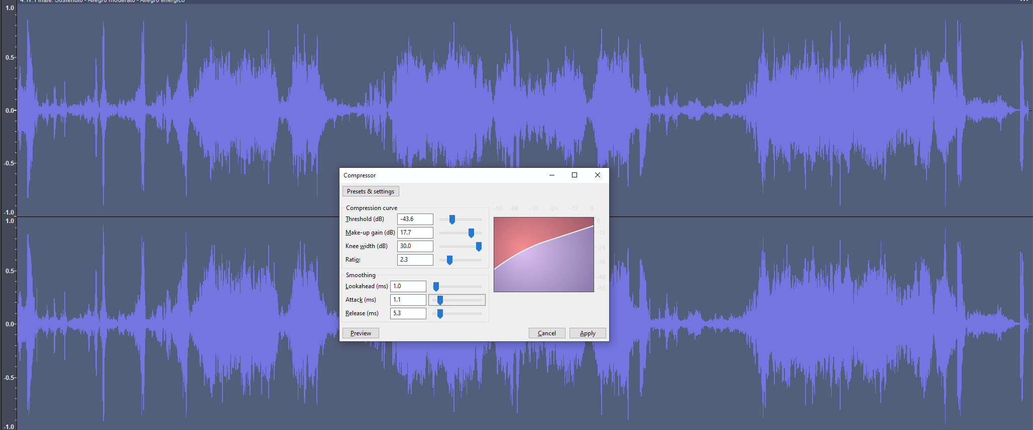 Как у вас дела с КОМПРЕССИЕЙ? Все оркестровые релизы (даже скачиваемые с ютуба) не сжаты и имеют огромный разброс громкости. Когда слушаю за пк - как-то не становится больно от динамики. На телефоне приходится часто держать палец на качельке громкости. А вот на аудиосистеме/портативной колонке - это ПИЗДЕЦ. Какие-нибудь хоралы с колокольчиками будет слышно тише слива толчка соседа сверху, а на тутти начнуть дрожать стены. Также проблематично такие треки кому-то отправлять, человек просто не поймёт. Можно понять, почему их оставляют в таком виде, но их приходится скачивать и ручками сжимать (для этого нужно держать у себя/скачивать флаки), причём в интернете как-то эту тему не затрагивают, нет какого-то более-менее универсмального списка параметров или автоматизированных скриптов. В audacity это "compressor", в audition вроде "dynamics compression". Тут свои нюансы, например если повышение будет на >4-5 Дб, звук будет плохой и смазанный. Например, у М 5.1 после сжатия литавры стали звучать как какаие-то ебучие пузыри или разговор на громкой связи в общественном туалете метр на метр
