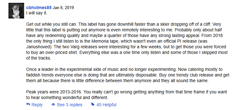 Я не говорю, что интерес к айдиэм это что-то плохое, просто занятно, что аниме-аватарка, например, не слушал того же A. G. Cook. Или вот в середине прошлого десятилетия вся музыкальная пресса писала, что Actress совершил революцию в айдиэм. За весь тред Actress вообще никто не упомянул.