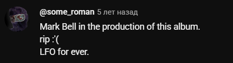 Мой эталонный и уникальный музыкант умерший в 2014 чел Марк Белл из LFO, хотел бы жить в той версии вселенной, где он жив и продолжает писать музыку Намедни наткнулся на один из старых миксов, такая-то душа https://www.mixcloud.com/allmixedupmixdump/lfo-live-on-xltronix-radio-2005/ (у кого не открывается накатите fastproxy)