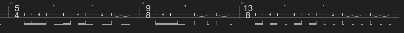 >>1133322 ну и че сложного? сиди себе доли считай, только нормальную запись найди там во вступлении 3/4 5/4 3/4 6/4 на круг. да ебаш по открытой струне там правда дальше будет не по открытой и в нормальном строе есть некоторые помехи со стороны анатомии, но не то чтобы пиздеци потом, и где-то в середине, затактами дохера ебашит, ну то-есть у него смещение там прет, конец фразы за пару четвертей до конца такта, и сразу вступление к следующему, запись под4/4 этого не покажет канешн, сплошное говно лиги какие-то нахуй не нужные, только голову ебут зато мозг слушателю поломаешь не приложив усилий нихуя.
