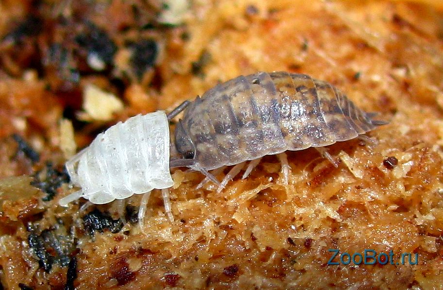 Мокрицы процветали и размножались. На второй фотографии видна крупная мокрица. Я за ними частенько наблюдал, видел их копошение и линьку. Они линяют частями: сначала отходит кусок панциря с головы мокрицы, и только через какое-то время с задницы. Или наоборот, не помню уже. Как на третьей картинке, только эта не моя, я как-то не заснял. Отошедший панцирь потом съедается.
