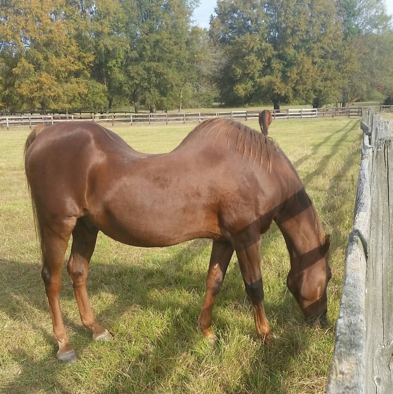 >>163642 Нет, не должна была. Вокруг одни мерины, а двух жеребцов никуда не выпускают, они там элитные «не подходи не тронь». У нее тут долгое время сопли с одной нозди текли, похоже как будто зубы резались. И норовит любую вещь грызомую (будь то забор, или перегородка в деннике) погрызть теперь, так что, возможно, действительно зубы.