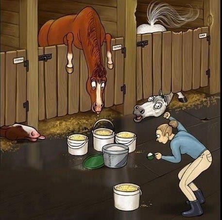 Арабка что-то приуныла совсем, уже не пугается ни говна, ни собак. Вспомнила трапецию. Теперь постоянно ее делает, лол. Еще нюхает свой живот и пытается оттолкнуть, когда трогаешь за пузо. Думаю, может, болит у нее чего. Сказали предложить сено и воду, послушать урчание живота. Таким образом отмели колики. Сказали что ничего у нее не болит, и дать ей по морде ,чтоб не вела себя так. Но я чет все равно сомневаюсь.