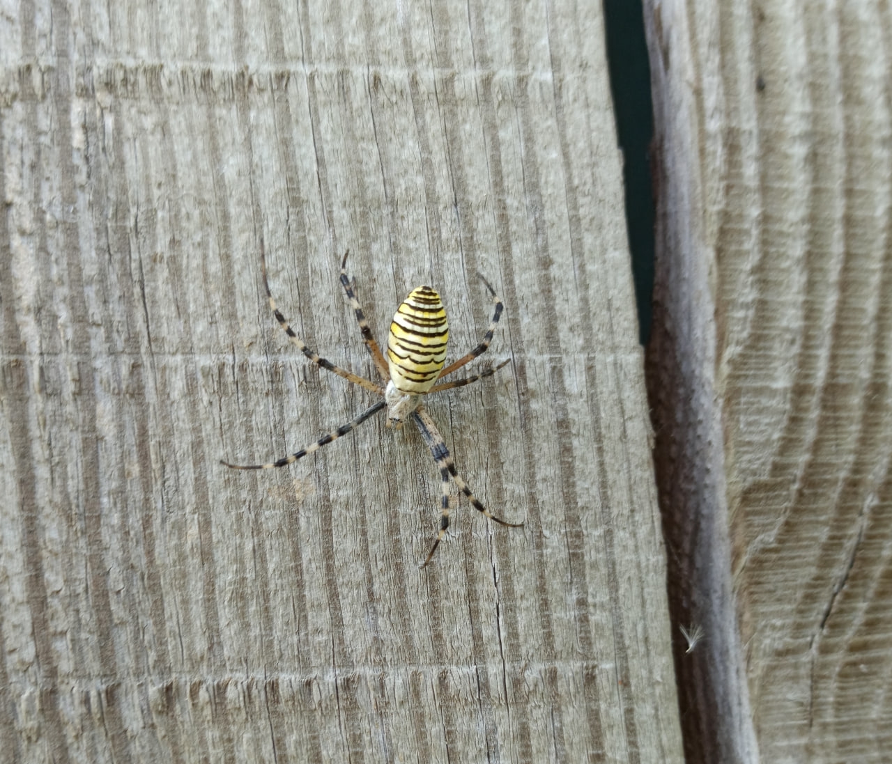 В общем помогите опознать. Многое видно на фото. Их того что может быть не видно, но так же у него имеется, это то что у него 4 длинных ноги, полосатых (черный и белый чередуются). Другие 4 коротких ноги.