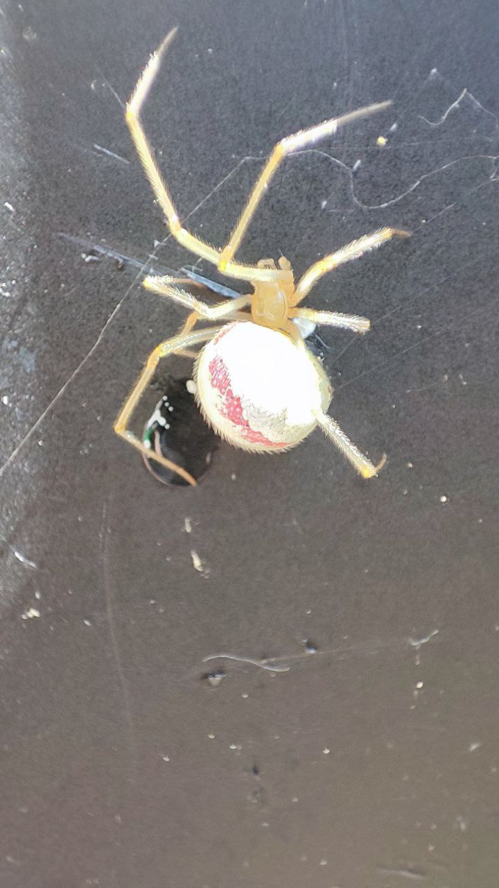 Товарищи, а есть ли кто-нибудь из тенётников, кто очень похож на белого каракурта? Я тут встретил кого-то очень похожего, но весьма большого размера, около 5 см, да еще в городе средней полосы.