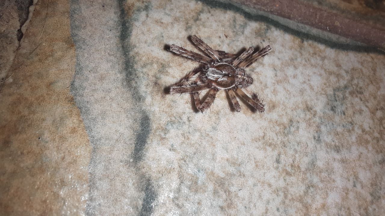 Что это может быть за паук? Прошу прощения за качество, ночью плохо снимает. Паук был достаточно крупный, длина тела без лапок где-то две фаланги. В первый раз вижу такого большого.