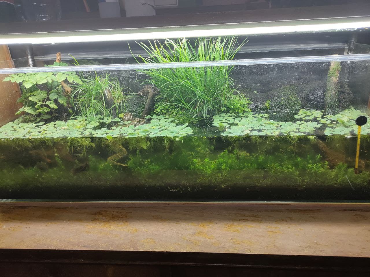 >>179310 Насчёт растений хз, я просто срезал мох у реки в лесу. И положил на берег, ещё яванский мох в воду закинул. На дне растет самая обычная почвопокровка. Над водой то что плавает не помню как называется. Из мха выросли сорняки из леса. Так что тут хз даже что этом. Можешь вообще попробовать газон срезать. Приживётся на изи скорее всего.
