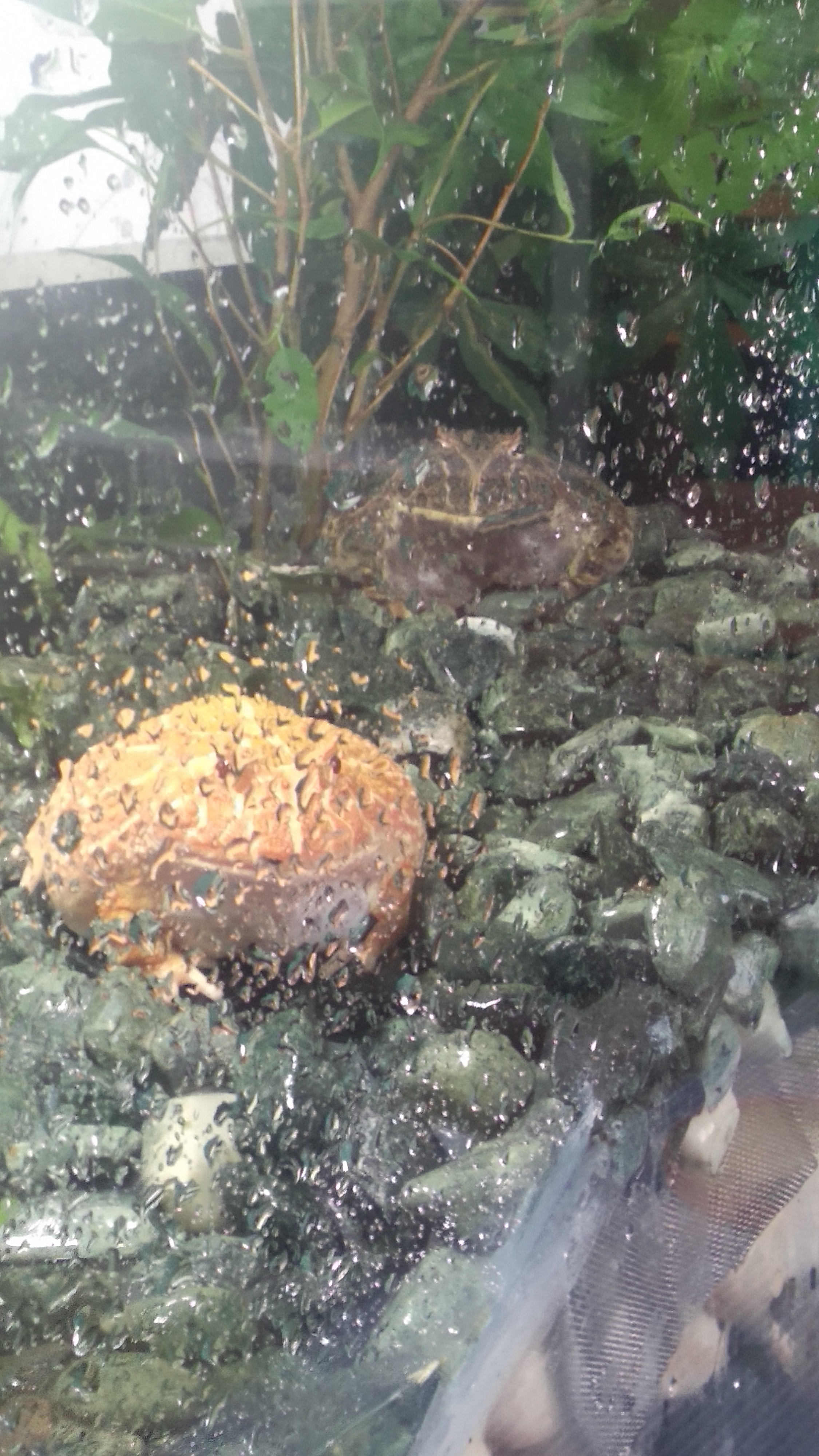 А так их обычное расписание. Это в 5-6 часов утра по ква-ква, потом включаеться лампа и они спят до вечера иногда переползая где получше. В 19-21.00 начинаеться ква-ква и они идут купаться, купаються они где-то до 2-3 часов ночи. Бывает по аквариуму рассекают и смотрят в стекло. Обращают внимания на телевизор, пару раз смотрели Киселёва.