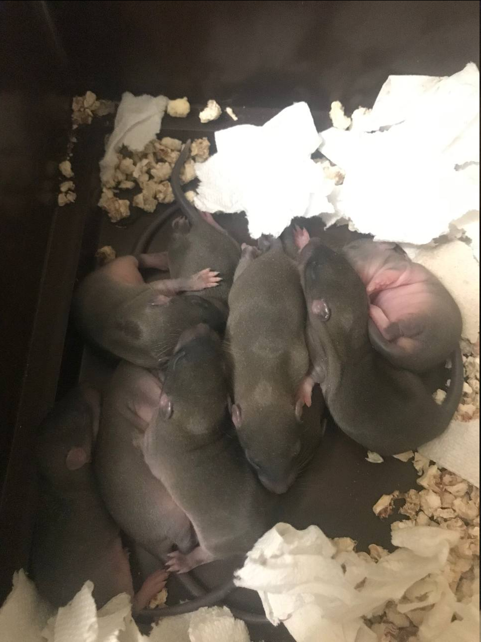 Вот крысюкам уже 9й день, на фотке. Пытался аккуратно посмотреть их пол, но вижу только писюны. Не может же так фартануть, что весь выводок - писюнастые? Или я как-то непрявильно высматриваю их... Сильно разсматривать их я не хочу, потому что я это делаю когда говно убираю, а мать начинает по всему дивану бегать из-за этого. Сегодня опять кусанула, бтв, но сплошала и только царапина. Но вот в междуножье там видна валынка, но сосков что-то заметить не смог. Мб чуть позже проявятся. Кста, я на видосах видел, что когда они с клетки вылазят, то у них уже колокола размером с арахис каждый.