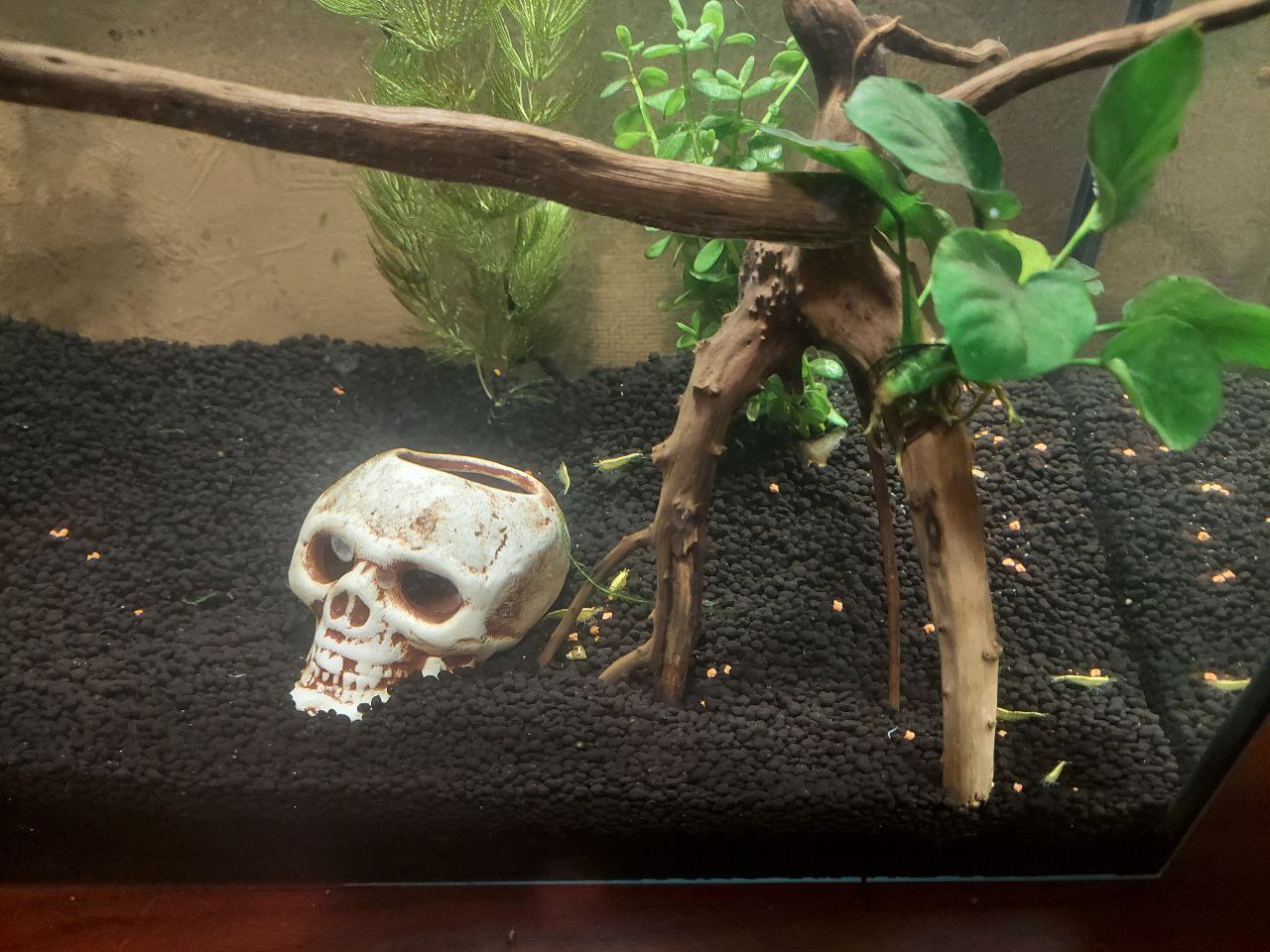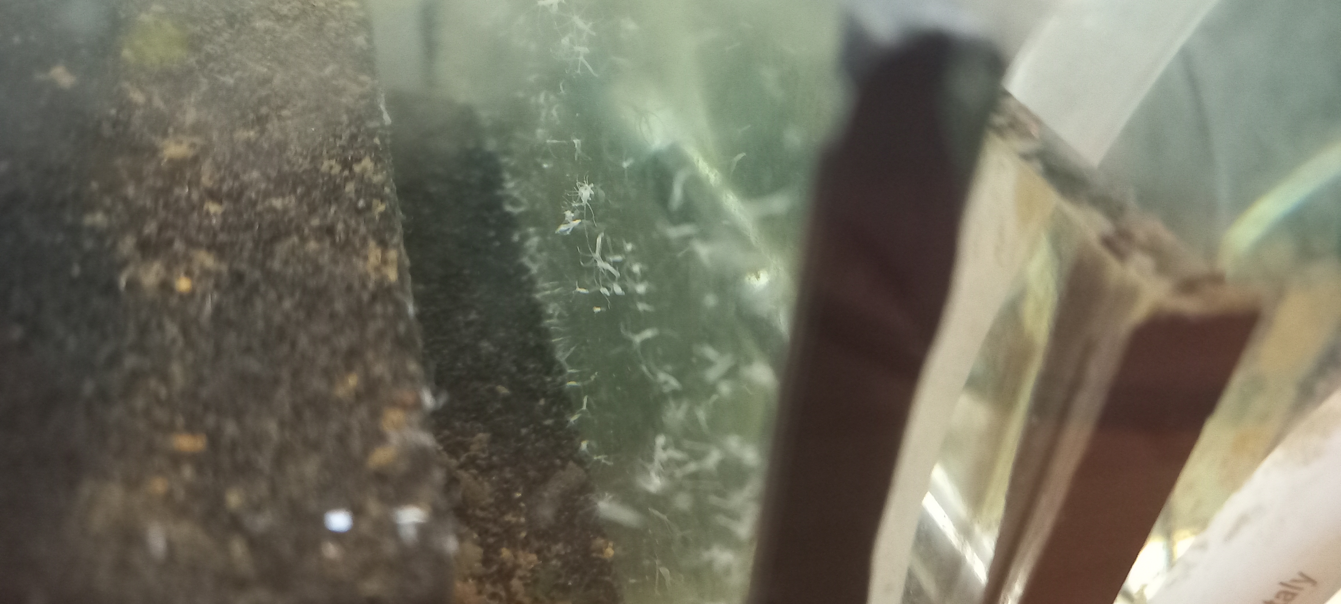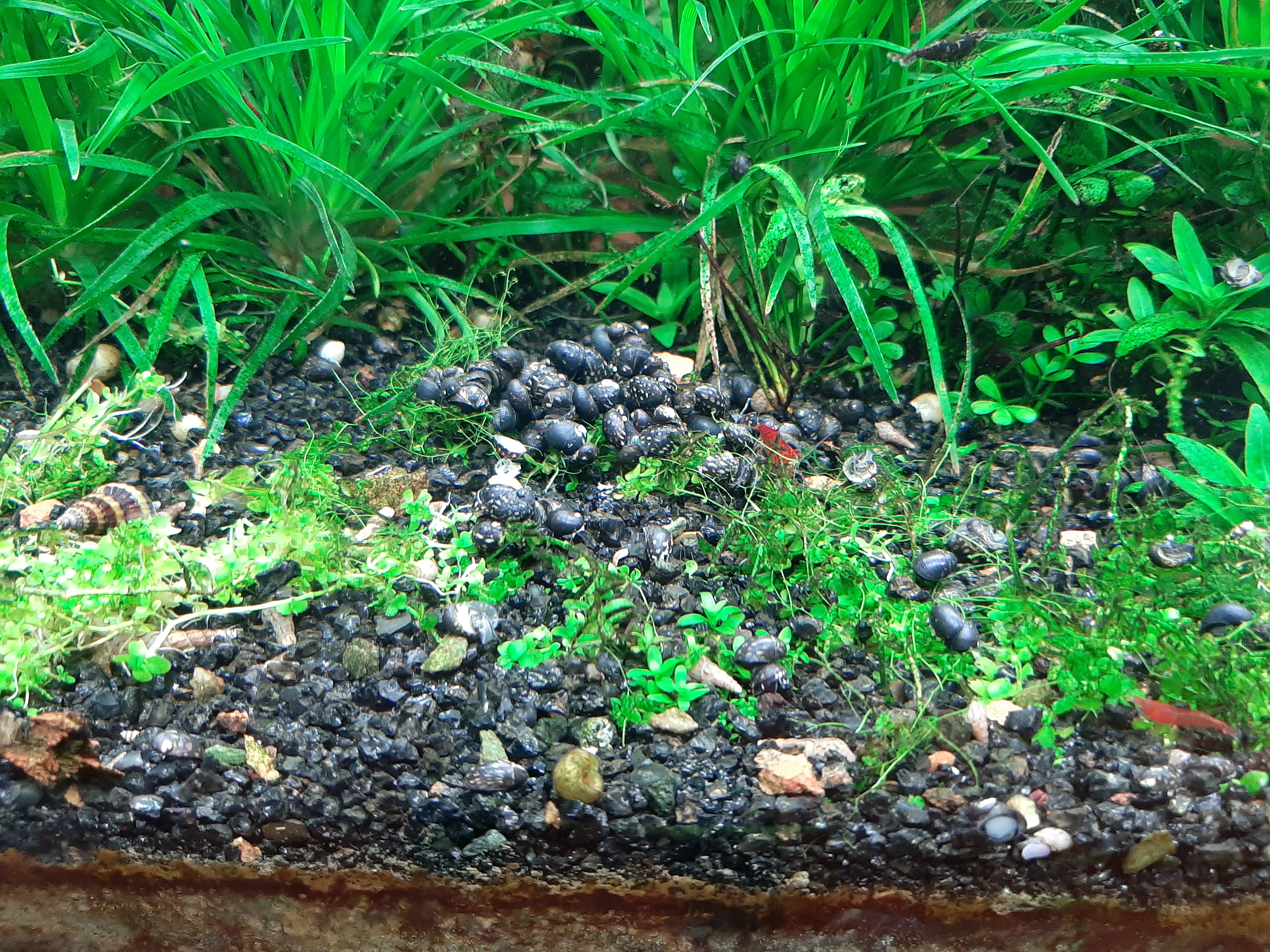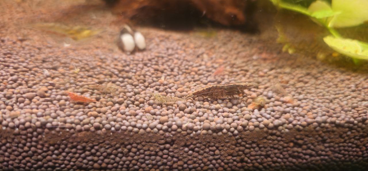 Почистил аквариум. Обнаружил что у меня значительно поднялась популяция креветок, в темноте и не заметил. Их десятка два + точно, а заселял я в аквариум 4шт.
