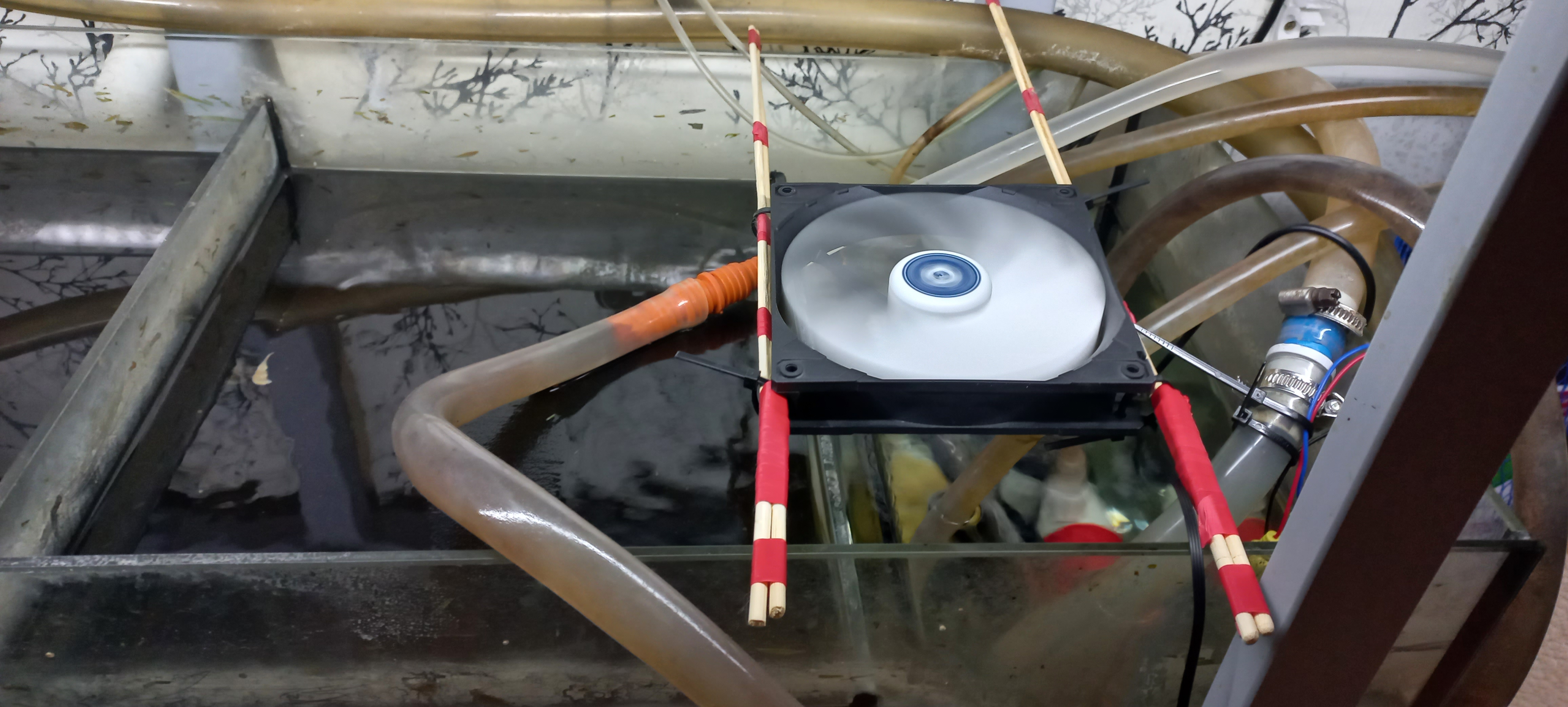 >>221831 Сними стакан и оставь только губку, если конструкция позволяет. Или возьми какой-нибудь фан мини или подобный тоже только с губкой ставь без стакана. Еще можно тупо аэролифт поставить на такой объем его за глаза.