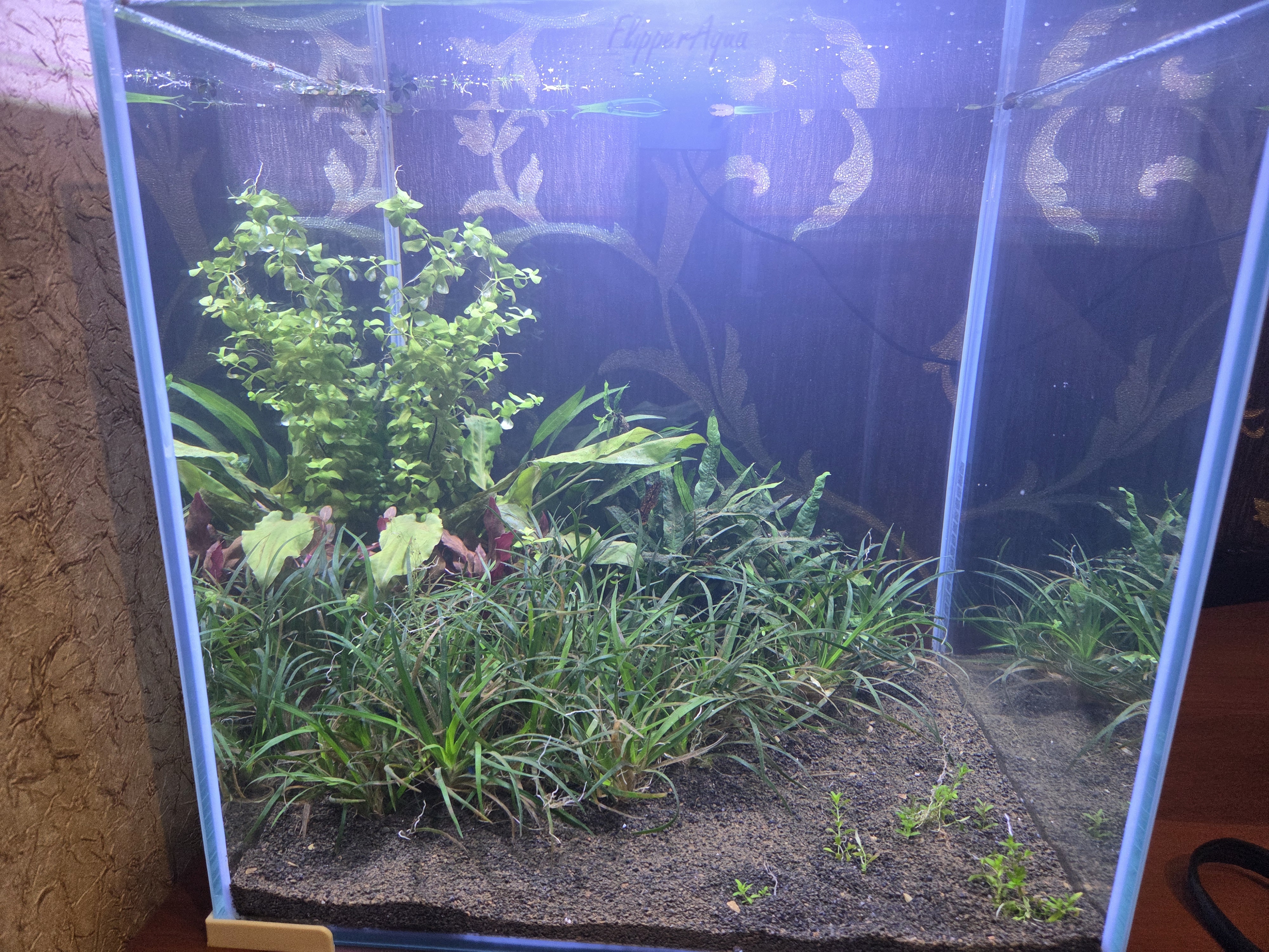 >>222021 Ну это пока. Брал растения исходя из того, что нет со2, чтобы сами по себе расли, пропалываю иногда и отношу в большой аквариум на работе. Как будет газ, так займусь почвопокровкой и красненькими растениями. Пробовал микратенум монте-карло, но он весь растворился или зарос кладофорой.