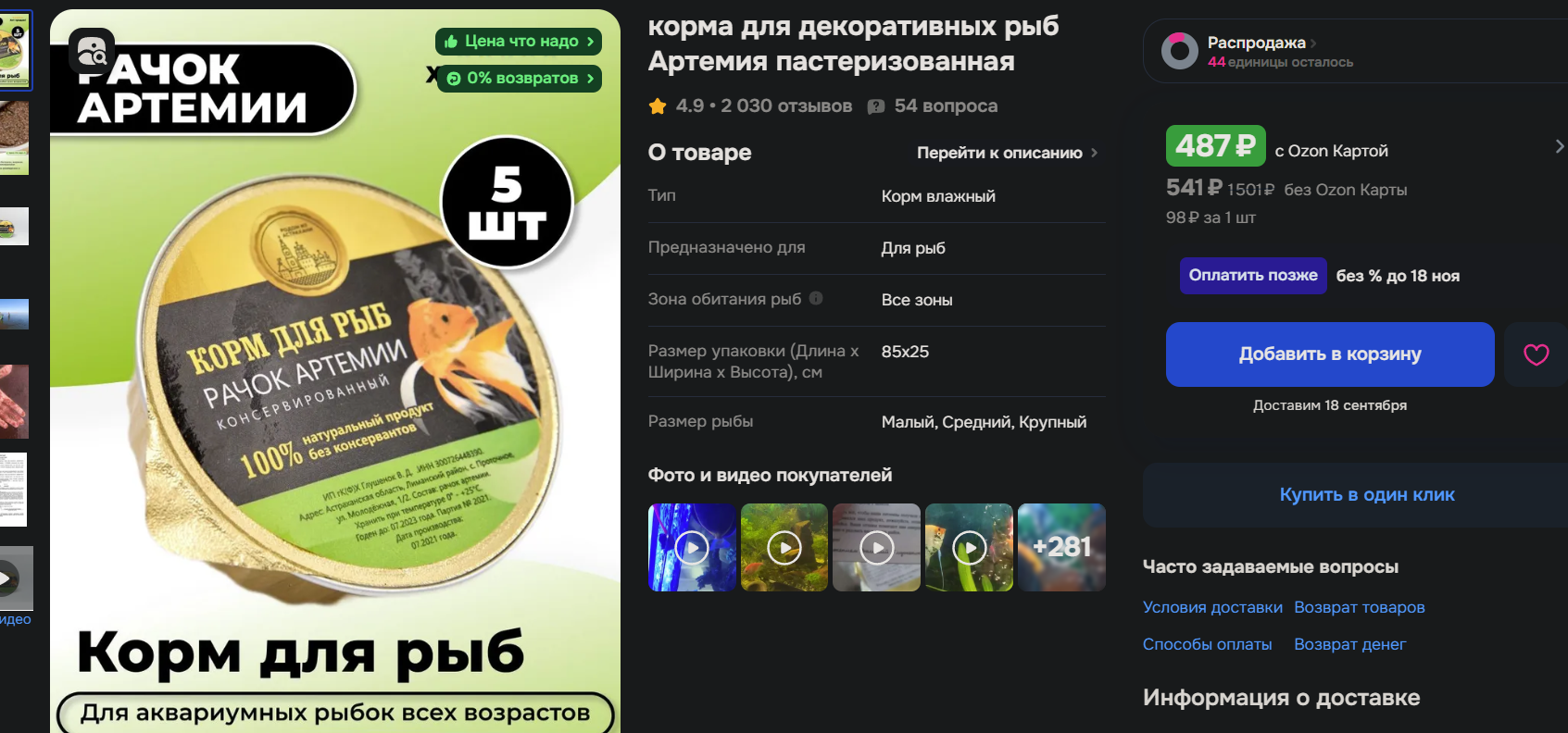 >>224682 Ага она уже взрослая крупная. И ее там прям дофига, в коробку даже пакетики кладут в которые можешь остатки переложить и заморозить. Так по инструкции открытая дня 3-4 в холодильнике хранится а не вскрытую пару лет можно вроде. Я несколько раз заказывал рыбы жрут ее как бешеные просто, а потом всю банку икрой заваливают, лол, барбусню так особенно сразу на нерест пробивает с артемии.