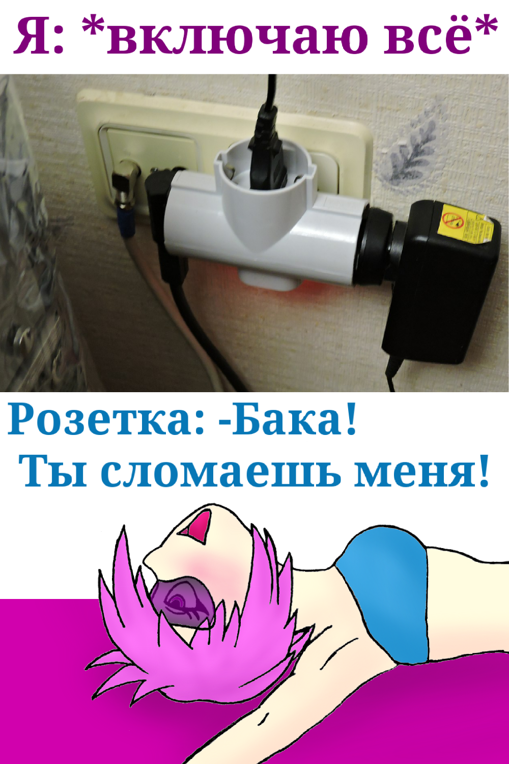 Розетка-тян (Маруся Розеткина) - девушка примерно 16 лет. У Розетки короткие, но очень густые нежно-розовые волосы длиной до подбородка, молочно-белая кожа и огромные сиреневые глаза (обычно закрыты визором, что впрочем не редкость для стигов). Самая яркая деталь ее образа - розовая розетка на корсете, которая вырабатывает электричество при движении девушки и может запитывать большинство электроприборов. Одета Розетка-тян в короткие шортики, розовый лиф и резиновые пляжные шлепанцы, предотвращающие заземление. Как и большинство стигов не испытывает очень ярких эмоций, но при этом жизнерадостная, позитивная и очень влюбчивая.
