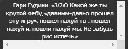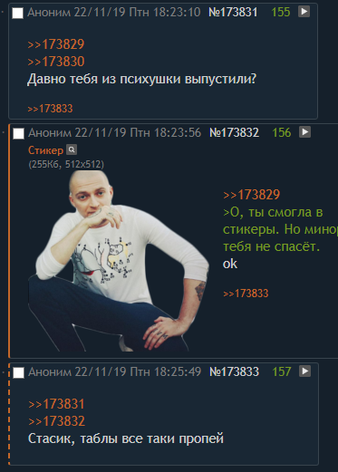 >>173761 >Потому что, Говнов и Говнай на самом деле очень хотят чтобы на них обратил внимание именно этот человек Как живется в 2015 году? Спойлер: в 2016 Мирон обратит на них внимание и вызовет Гнойного на баттл, а в 2017 баттл состоится, и Мирон проебет 0:5. КПСС словит кучу хайпа и станет самодостаточным рэп-артистом довольно высокого по меркам рурэпа уровня (но менее известным, чем Мирон).