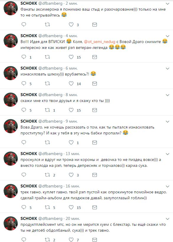 >>173784 Это болезнь, они уже никогда не отцепятся от Мирона, на них жидовская метка, до самой смерти они будут подсасывать ему и пытаться достучаться до небес, просто посмотрите на Шокка, это же не просто чокнутый, он чокнутый на Окси и с каждой новой попыткой хотя бы занюхать молекулу его запаха всё хуже и хуже. У Шокка так все плохо потому что они были как братья долгое время, возможно даже спали на одной кровати, бог его знает. А Слава с Замаем не так сильно повернуты на нем, потому что взаимодействия с Мироном были слабее (Славу всего лишь вызвали на батл и потрогали, а Замая упомянули в одном из самых эпичных батлов в мире, ну и пара твиттов). Еще в пример можно привести Соню Грезе, Олега ЛСП, Виктора СД, все русские батл площадки и список будет пополняться ежегодно