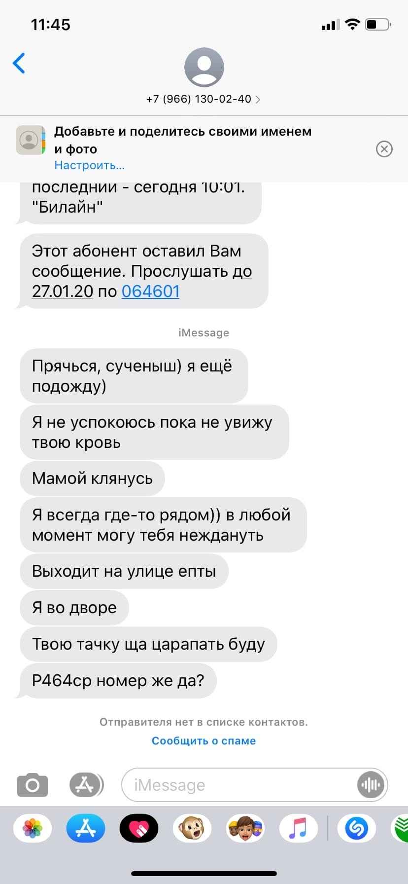Проходит ещё пару дней. В обычные сообщения прилетает то что на скрине. К слову вышел я на улицу часам к двум, никого не увидел. Машина не царапанная. Вроде бы. Затем идёт опять назвон, и вот такой красивый донат.