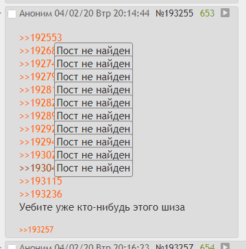 Конкистадор на связи Захожу все так же с утра, днем и перед сном Вижу древние шизы - сразу баню базара нет Составляйте цепочки, я забаню один пост и все остальные исчезнут, если вы правильно выделили - это такая игра: попади в шизика из цепемёта Не перекатываю пушто нахуя? У нас демократия и нет правительства, нет пыни понимаете? Каждый раз Оп-пыней может стать абсолютно новый пользователь! Это ли не идеальная утопия? Если вы перекатили и ваш пост еще можно спасти, подредактировав пару деталей (например как всегда проебались с нумерацией) то будьте уверены - я это сделаю, своих в беде не бросаем Ну а так это забавный экспириенс - 2000 постов в треде Нам по идее вообще перекаты не нужны - все равно я все треды закрепляю, то есть само понятие "бамп-лимит" на обр отсутствует