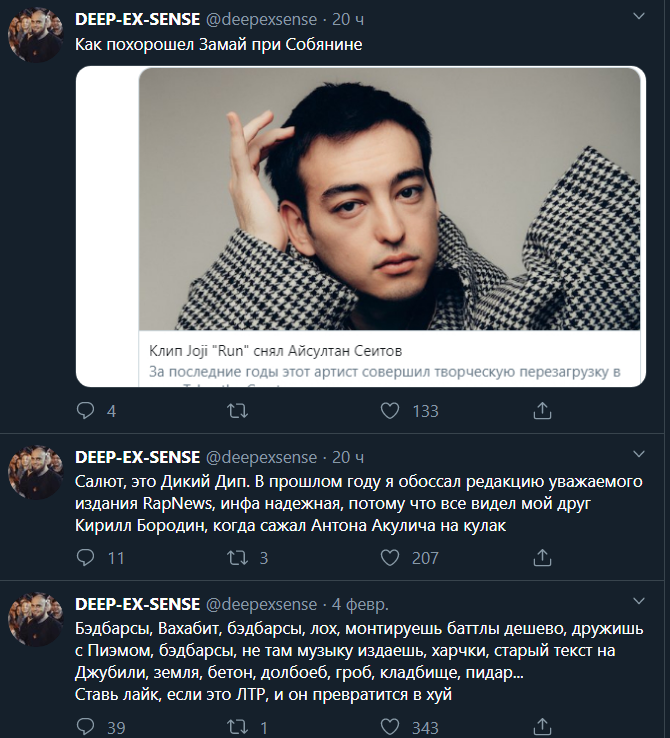 Как думаете, Дип любит малолеток, тк сам психически не совсем развит? Или чувствует себя в неполноценным, например из-за писклявого голоса и вой в треках - просто попытка преодолеть этот страх. Как он к хую плейндеда привязался, мб это проекции были? Мол, у него самого с этим какие-то траблы типа мелкого размера и дип так обрадовался, что у кого-то хуй кривоват (причем совсем немного), что надо было всем рассказать
