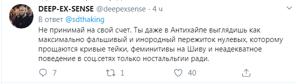 Витя молодец, хуле ему еще было делать, он же двачер как все мы и резко реагирует на любую критику, от него что требовалось после разъеба Дипы? Выпустить нормальный следующий трек, он сделал это, хуле еще надо? А за его ощущенским твиттером следить - себя не уважать.