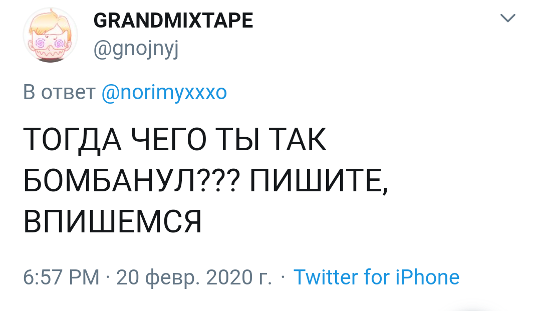 Гнойный гнойно поступил, там мирошка у своего бро Парфёнова был, бродского интелегентам читал, прибухнул чутка, а тут БАМ, бутер бродский вскрывает гнойник, ну и сам гнойник спорный, дело то мутное, это не стаканчик кинули, тут серьёзней все, мироха правильно делал, что хранил молчание, ну а про славу можно было чуть раньше и развернутнее расписать, если про шокиру массы не знают, либо думают что он тупо шиз, то про славу массы думают, что он продажный клоун, так что его уже хуй распиаришь или отпустишь, он в удобной позиции, так что можно было бы про него расписать, либо ваще трек сделать, было бы кайфово Алсо мироха теперь наверное разозлен, вскрыта ахилесова пята, может на классика сделает убийство