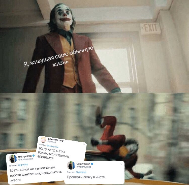 Джокер не тот, чей слабый текст бы ПОВЕРГ ХРИСТА, На мне нельзя поставить крест - я ПОВЕРХ КРЕСТА! У Харли Квин растет живот - я был НЕ ПРОЧЬ ПОНАВЕЩАТЬ ЕЕ, Да, это моя фишка - НЕПОРОЧНОЕ ЗАЧАТИЕ!