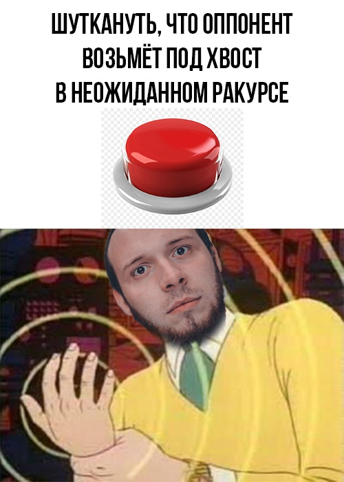 Мой оппонент, Артем Вараб - зануда жуткий! В пизду его, лучше послушайте, какие я придумал шутки: Водитель трактора Иван во время ролевых игр с женой просит ее повторять слово «триста»! Саурон в военкомате проходил только окулиста!
