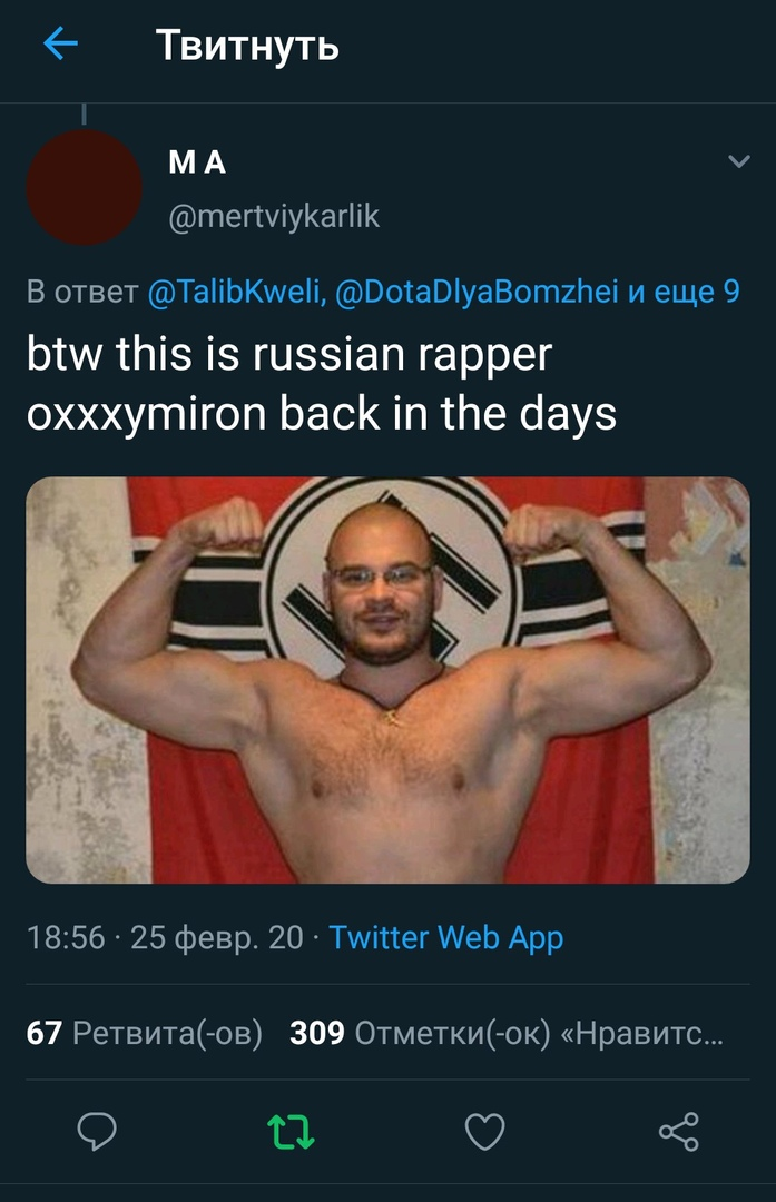 >>202441 44-рейх летний Талиб Квали скрысил на Вику сиди в администрацию тви - взрослый поступок легенды рэпа, ты что-то имеешь против? Мы всего лишь продолжаем дело Талиба в тви, только в вк