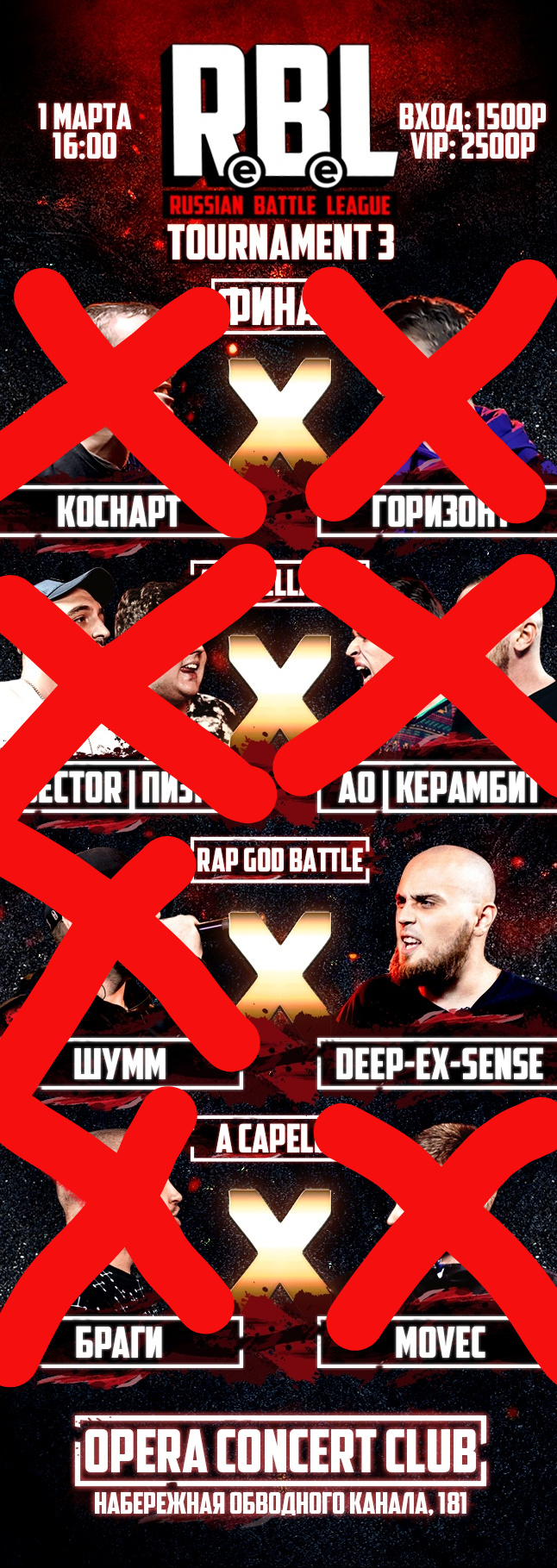 Versus R.i.P, второго сезона Рвать на Битах не будет, третий сезон 140 BPM Cup очевидно последний и закончится раньше финала из-за пустых залов, последний эвент Russian Battle League - 1 марта