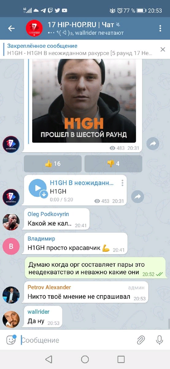 Пары на шестой раунд были распределены по желанию организаторов, основываясь на каких-то опросах и личных предпочтениях, тем самым, также был обесценен труд судей. С участниками мероприятия не было никакого согласования изменения системы, никакого обсуждения. Большая часть людей, которые на самом деле генерируют весь контент (участники) не согласны с данным отношением и будут бойкотировать 6 раунд, если пары не будут изменены по стандартному распределению соревнований hip-hop.ru по баллам, а именно по результатам исключительно пятого раунда: 1 - 17, 2 - 18 и т.д.