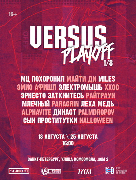 Versus Снято: Птаха/Guf, Грязный Рамирес/Энди Картрайт Планируется отснять: Rickey F/Гарри Топор (BPM), Big Russian Boss/AK-47