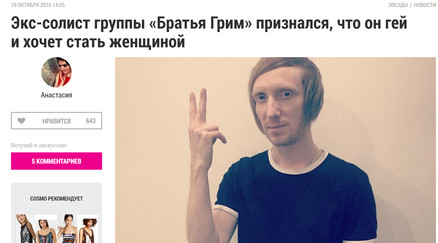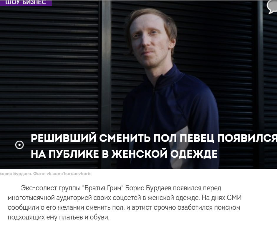 Теперь продюсер Бориса заявил, что он хочет поменять пол и стать женщиной. «У него есть мысли по поводу смены пола. Если он это сделает, я перестану с ним работать. Он гей, а это и так отклонение. Если он станет ещё и женщиной, то будет просить называть его не Борей, а какой-нибудь Натали… Публика перестанет его воспринимать», — рассказал Андрей Бородин в интервью life.ru.