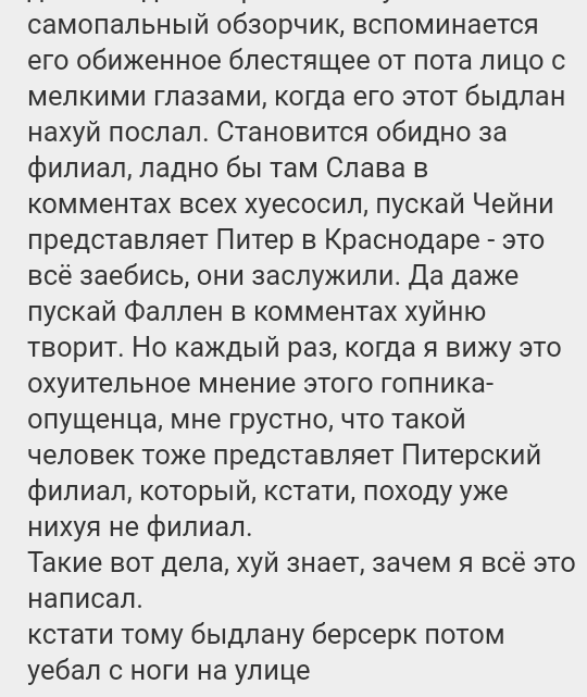 >>97641 И после этого всякие долбаебы говорят, что на бпмах нету панчей и бпмщики не могут в нормальные текста. Тот же хуесос мовец подобного бы никогда не придумал