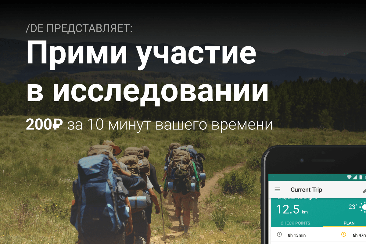 Вечер в доску активно отдыхающее. TL:DR прими участие в исследовании и получи 200р-400р ——— Я делаю исследование для проекта приложения для пеших походов и туризма. Мне нужны участники, с которыми будут проводиться короткие сессии по 10-15 минут, в начале для интервью, потом для тестирования прототипа. Плачу по 200р за каждую. Кто мне нужен: — Начальный-средний опыт пеших походов — Базовое знание английского (общение будет на русском, прототип приложения на английском, квалификационка тоже на английском) — Интервью будет проводиться через скайп\хэнгаутс, щии можно не палить.Ваши паспортные данные мне не нужны Вот тут ссылочка на квалификационный опрос(6 вопросов), пройдите его, оставьте свою почту или телеграмм и я с вами свяжусь: уберите пробел перед .gle На русском: https://forms. gle/9iWhDLaQ1QESsmNG7 На английском: https://forms. gle/mJcthGzKpSdaQFDBA —— мод, надеюсь это не противоречит правилом доски, я живой человек из /de, делаю для себя и не пытаюсь кого-то наёбывать