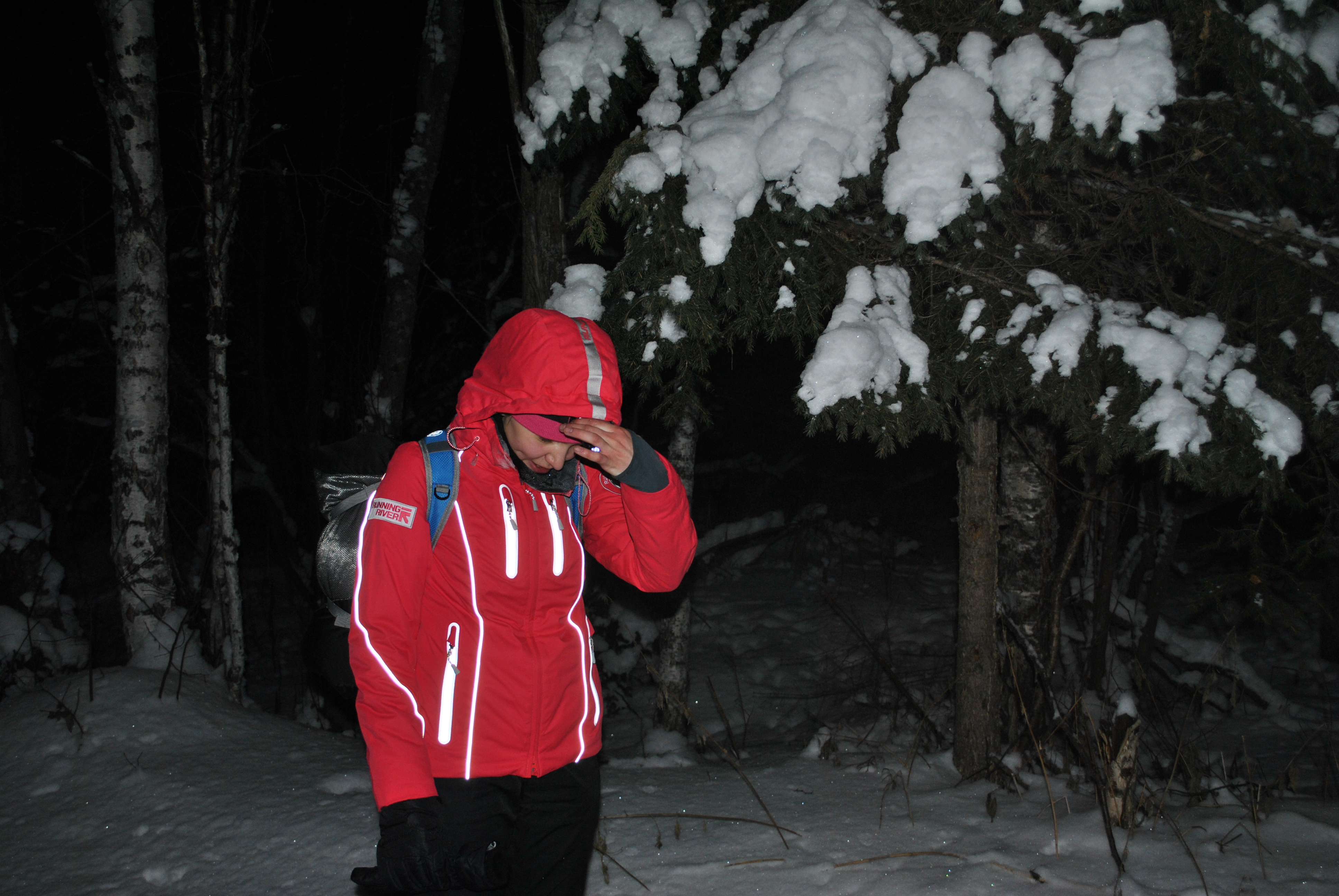 Через 20 минут были на тропе, ведущей на кордон. Было очень много следов зверей, зайчиков, лисичек, ещё каких-то млекопитающих. Жене было страшно идти. Налобный фонарь освещал ночной лес и его причудливые формы. Человеческих следов не было.