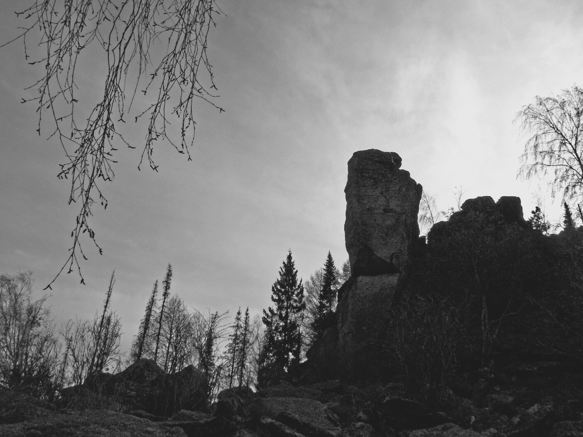 Конечная точка - скала "Парус" (хотя больше похожа на голову бритого самурая). Хотел полазить там еще, т.к. есть очень много интересных локаций, но телефонный навигатор почему-то жутко пиздел и не позиционировал нормально на карте. Посмотрел викимапию - в двух шагах буквально назад завернул от "Колдунов", блядь.