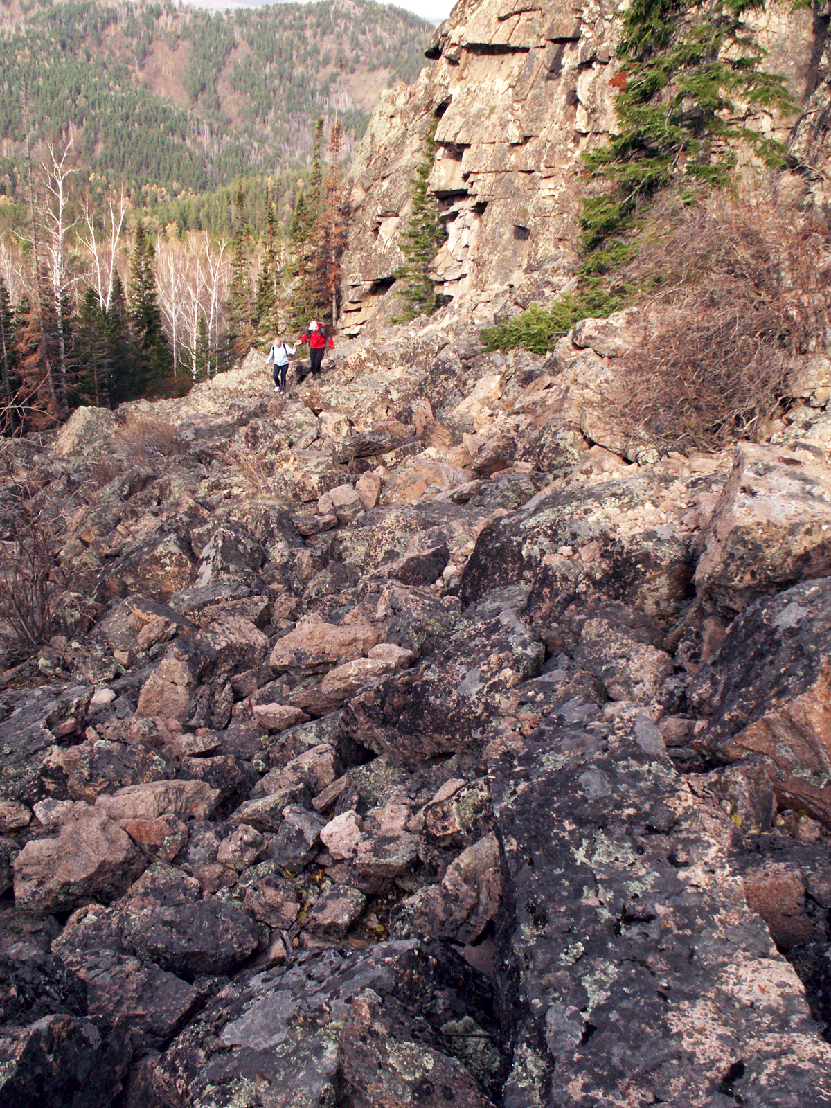 >>32137 В прошлом году я ездил так: 1) на тачиле доезжаешь до лагеря "Сказка"; 2) бросаешь машину возле входа где вывеска и идешь налево, там будет дыра в заборе; 3) дальше обходишь лагерь, держась правее вдоль забора, доходишь до брода и там уже выходишь на тропу, тропа идет нелогично и петляет, поэтому я шел прямиком через лес (так ты её 2-3 раза пересечешь). Сопку из леса не видно, поэтому иди по приборам. 4) На самой сопке достаточно легко можно залезть на вершину, или справа от нее полазить по курумнику. Так же от неё идет тропа направо в решетников лог, по ней я недалеко сходил, там тоже есть интересные скалки.