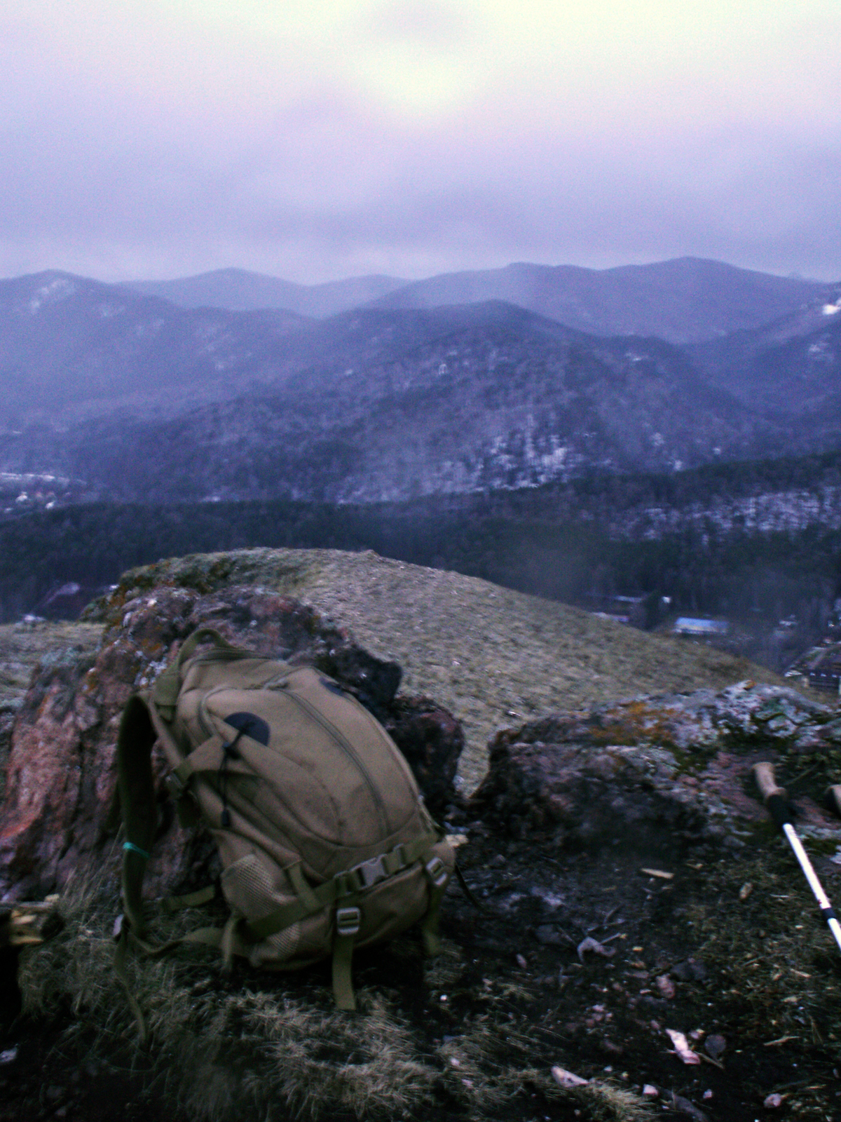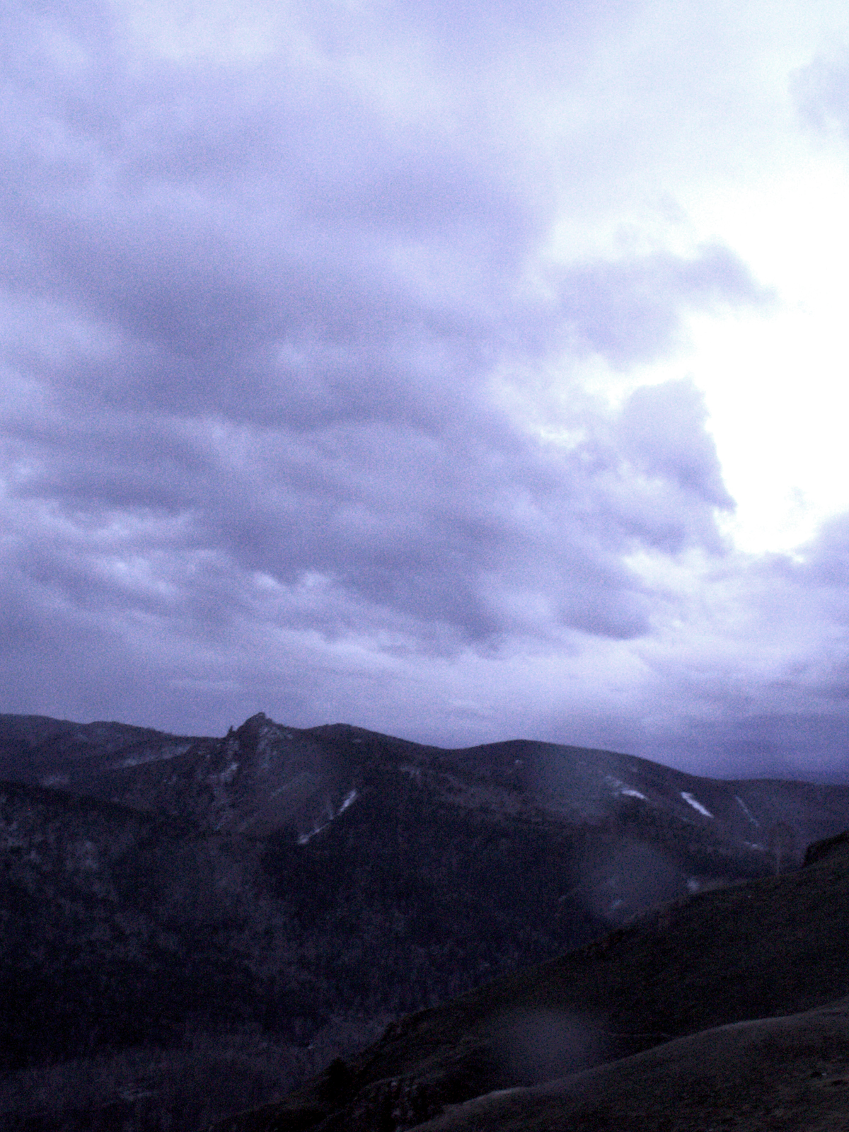 Встал вчера в пять часов, поехал на хребет. Думал сфотаю восход солнца. Хуй-то там, на гриве продержался минут двадцать под ебеническими порывами ветра и горизонтального дождя со снегом, когда объектив фотика забивало только открой крышку, а сам фотик просто сдувало с камня, промок моментально. Кроме того все тропинки заледенели, а подо льдом течет вода. Поднялся еще норм, а на спуске уебался несколько раз с переворотами и кульбитами, и промочил боты. Приехал в город - все заебись, светит солнышко, тучки еле ходят, никаких осадков. Обидно, сука.