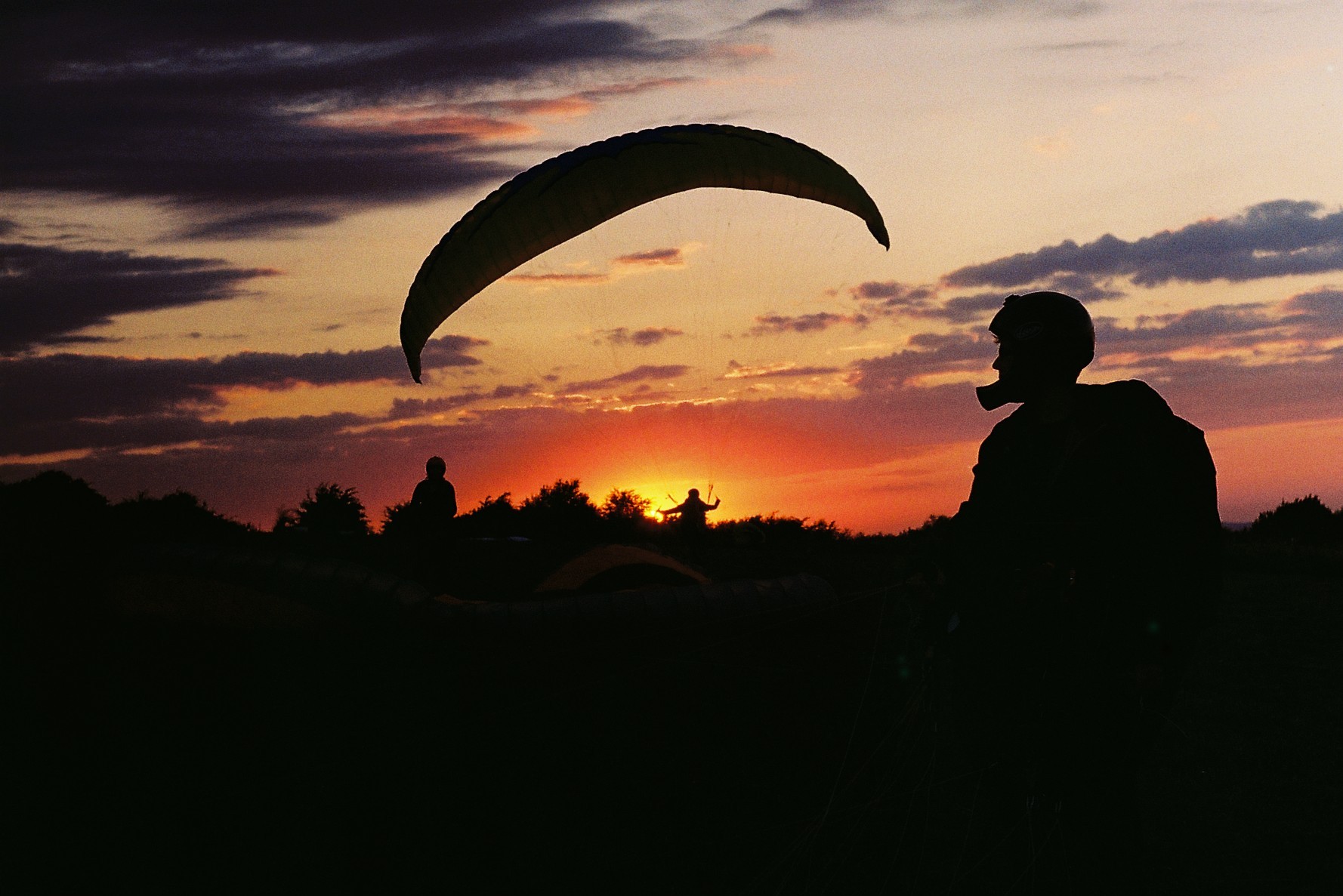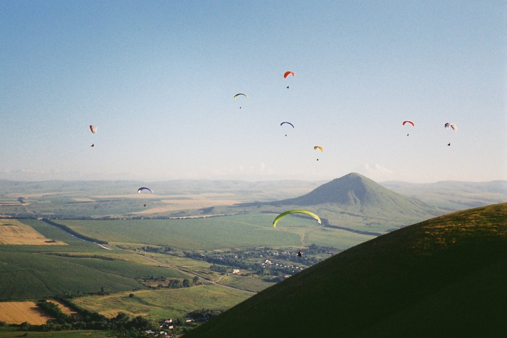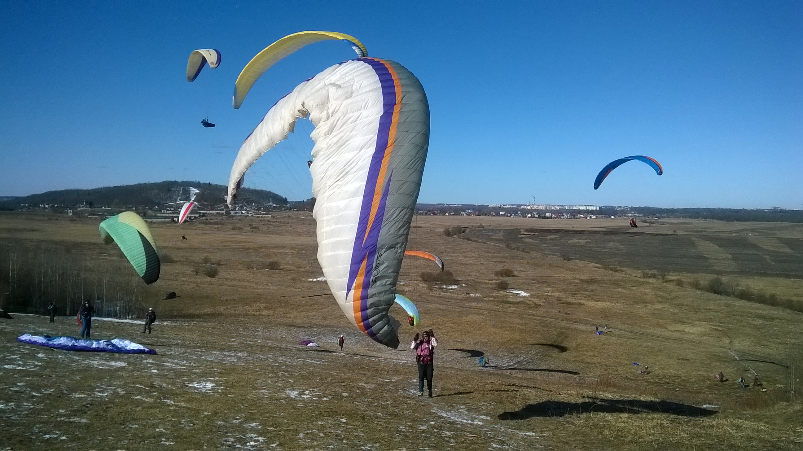 Вообще там был выезд школьного клуба парапланеризма, школьники толпами бегала туда-сюда со всякими разными куполами. Я как-то вообще с трудом представляю, как родители отдают своих детей в подобные секции, мне бы страшно было своего личинуса отдавать. Зато им это бесплатно, и обучение и прокат крыльев на время обучения. Правда крылья там некоторые древние, помню слышал как школьники смеялись что некоторые парапланы старше их самих.