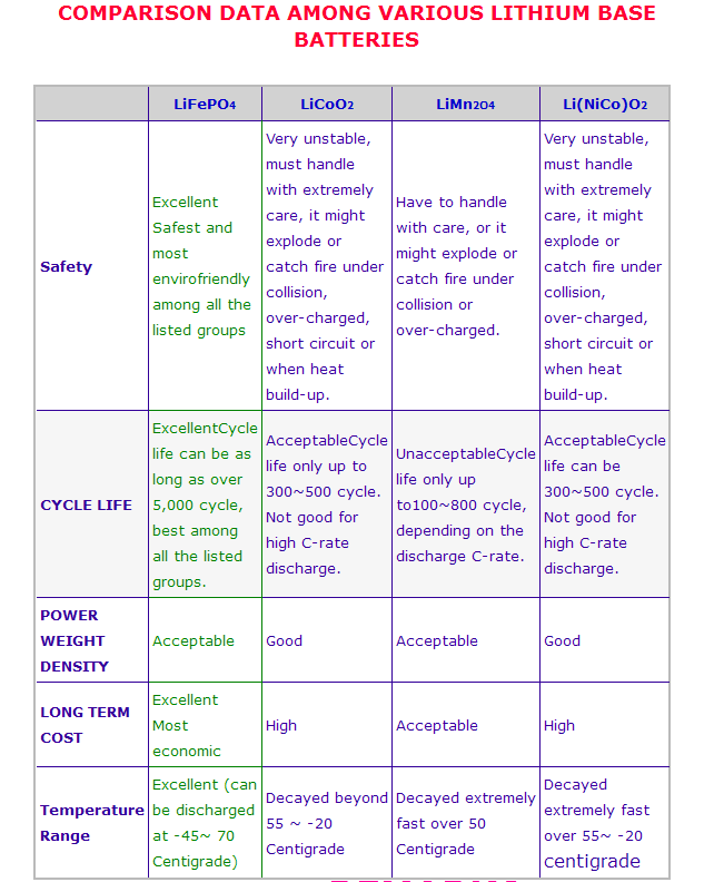 >>5615 Откуда табличка? LiFePO4 не держит 5000 циклов, да по трём нижним параметрам нет конкретных значений: могли бы удельную ёмкость, средние цены и токоотдачу поконкретнее расписать.