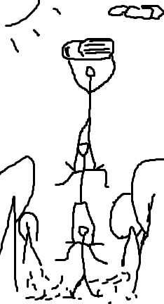 >>29069 >Если вдвоём, то кто-то должен сесть на плечи другого и поднять рюкзак как можно выше, тоже кричать. Втроем - точно такая же схема, один садится на плечи второму, второй на плечи третьему, первый поднимает рюкзак. Я, когда читаю такое, сразу представляю себе пикрелейтед