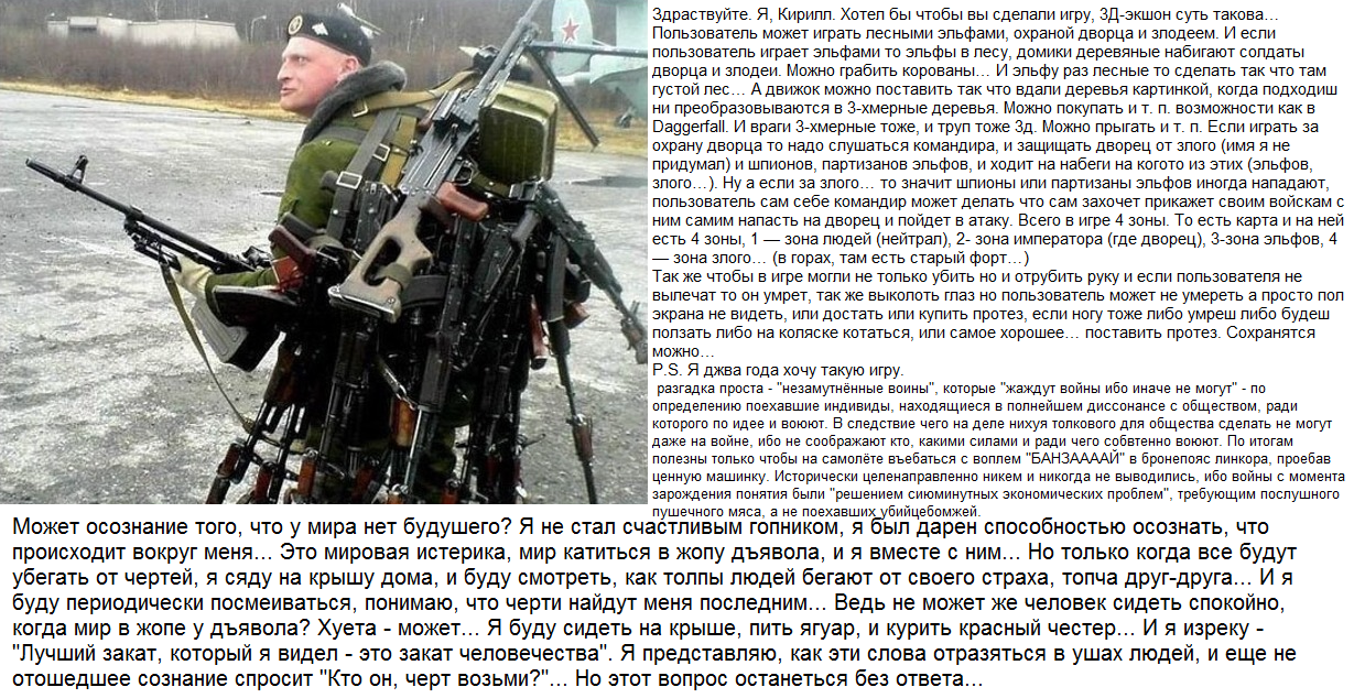 Вот так загоны рапторов превращаются в гей-треды и инструкции по ебле в анал. А инструкции по ебле в анал и гей-треды превращаются... В тактические треды камуфла и молле!